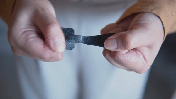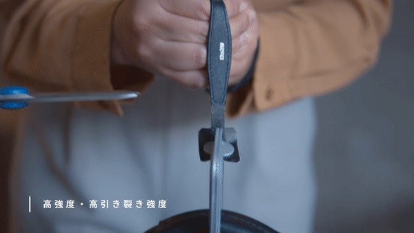 シートも強化繊維シートで高い引裂強度を実現しています。ハサミで一部を裂いた状態で重さをかけてもシートが切れてしまうことはありません。