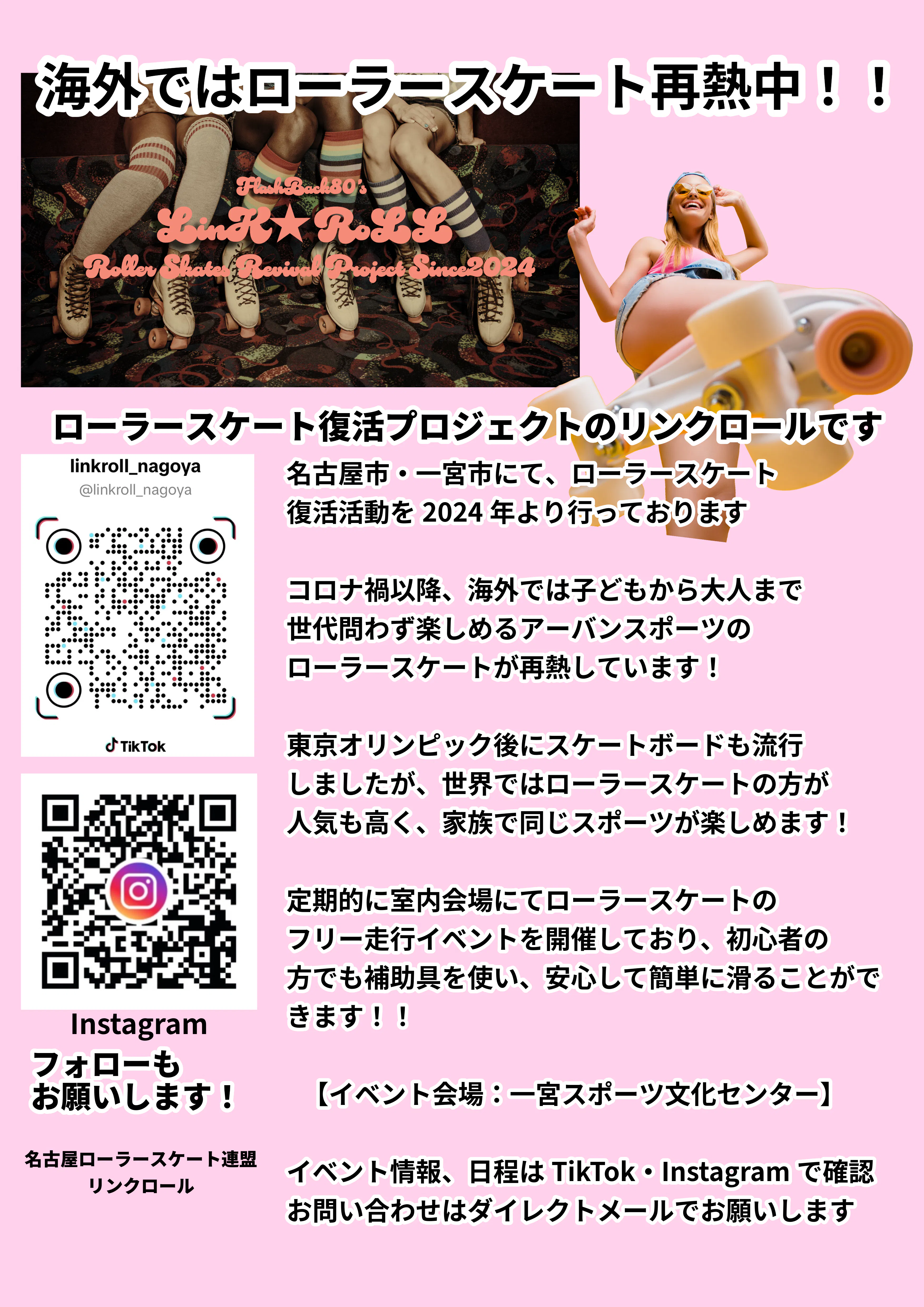 現在、一宮スポーツ文化センターで定期的にローラーディスコイベントを開催しています。