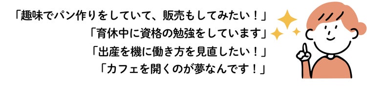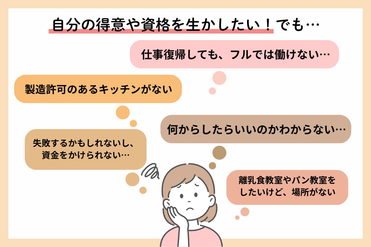 パンやお菓子を作って販売してみたい、料理教室を開いてみたい、いつか自分のお店を持ちたいけどまずは小さく試したいーー。