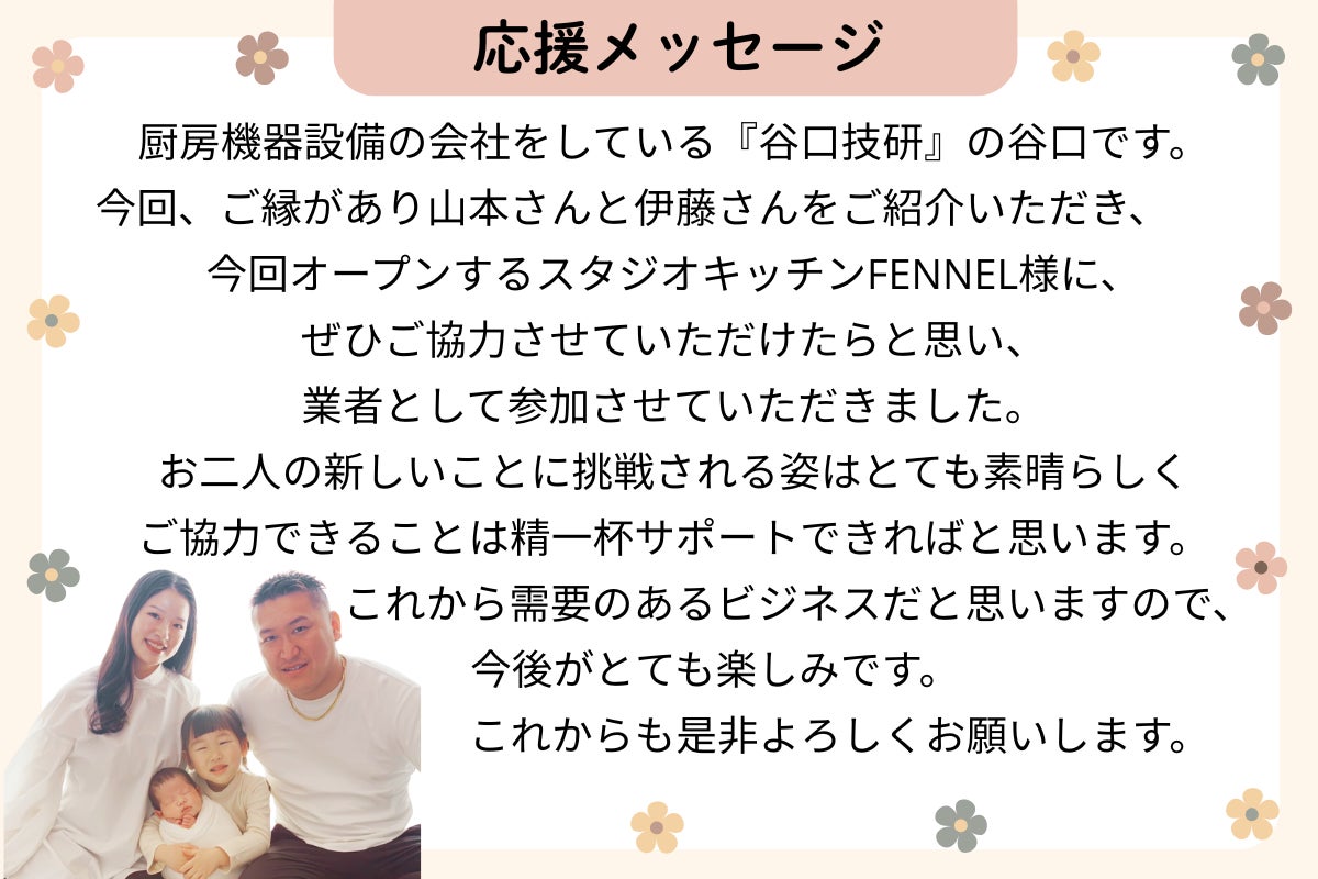 2025/12/11 23:30クラファンご支援の皆様へこのたびは、私たちのレンタルキッチンプロジェクトに温かいご支援をいただき、心より感謝申し上げます。73名もの方のお力添えで、目標額に達成する事ができました。このキッチンを作ることは、単に設備を整えることが目的ではありません。誰かが最初の一歩を踏み出すとき、ずっと胸の奥にしまっていた「いつかやってみたい」という気持ちを、安心して形にできる場所をつくりたい!そんな想いが込められています。パン作りを始めたい人、マルシェに出店してみたい人、自分の商品を形にしたい人。人生は一度きりだからかそ、挑戦したい気持ちを大切にしてほしい。勇気がほしくて立ち止まっていた方たちが、このキッチンから一歩踏み出していけますように。そして、その背中を優しく押せますように。今回いただいたご支援は、私たちだけでなく、これから挑戦していく多くの人たちの未来を照らす力になっています。皆さまがくださった想いをしっかり受け止め、夢を形にできる場所を必ず完成させます。キッチンができた際には、そこから生まれる笑顔やストーリーを、一緒に見守っていただけたら嬉しいです。改めまして、このプロジェクトを信じ、支えていただいたことに深く感謝いたします。本当に、ありがとうございました。山本真貴子・伊藤愛花 もっと見る