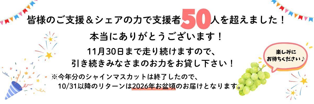 ※今年分のシャインマスカットは終了したので、以降のリターンは2026年お盆頃のお届けとなります。
