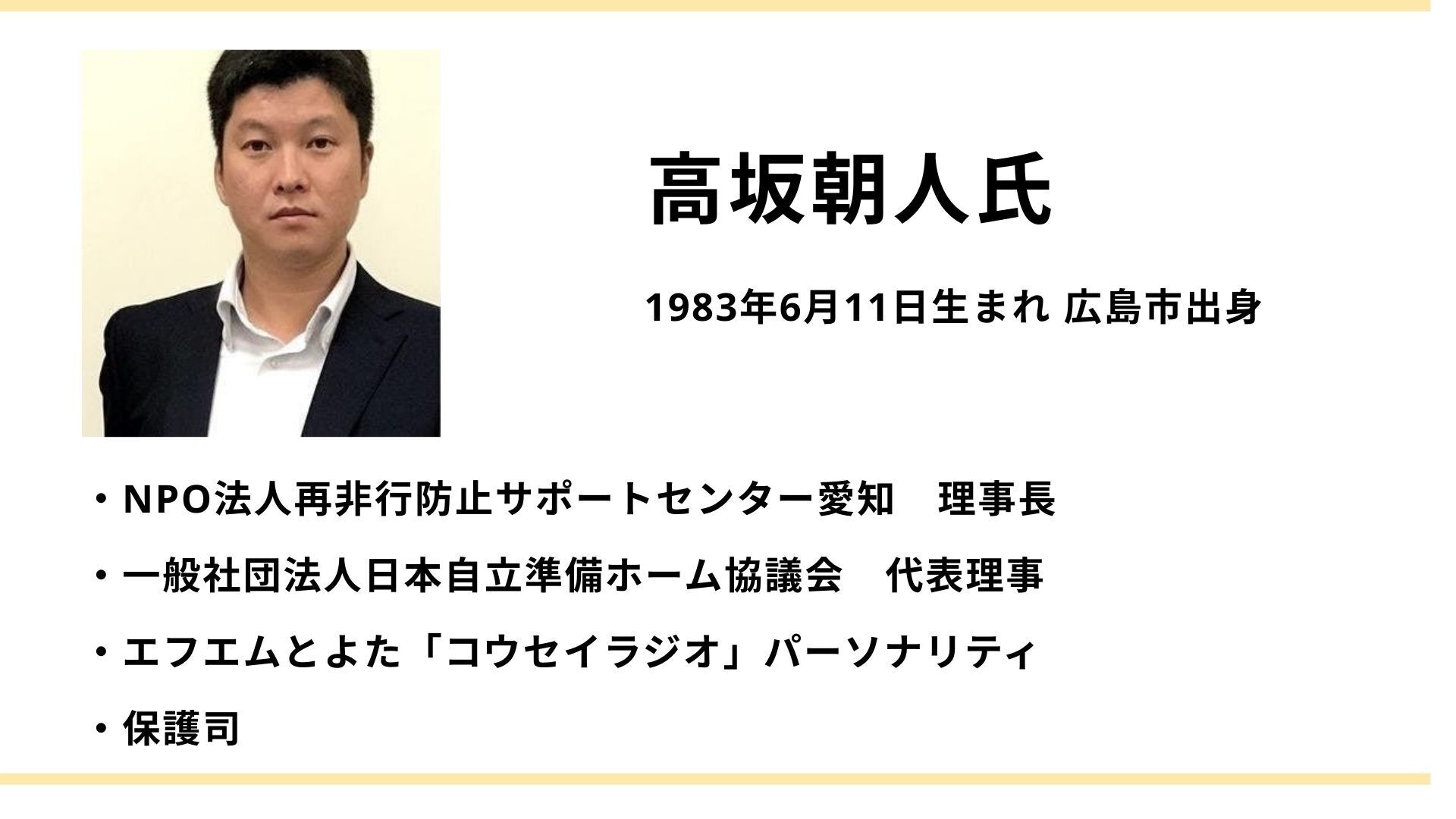そう語るのは、かつて自身も少年院を経験し、現在は支援者として活動する 高坂朝人さん(NPO法人再非行防止サポートセンター愛知 理事長) です。