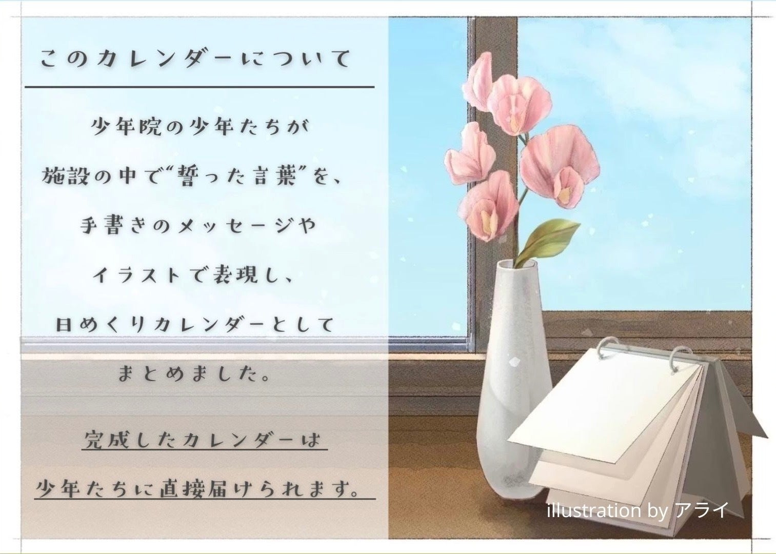また、”あの日誓った”カレンダーというタイトルは、少年院で過ごす彼らに考えてもらったものです。