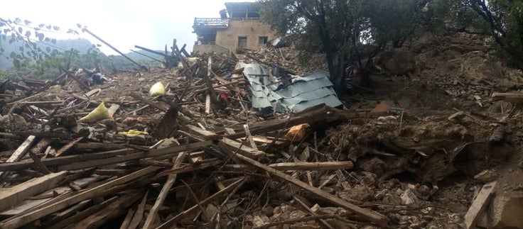 地震の傷跡が生々しい被災地域の様子(9月7日、クナール州の被災地域にて)