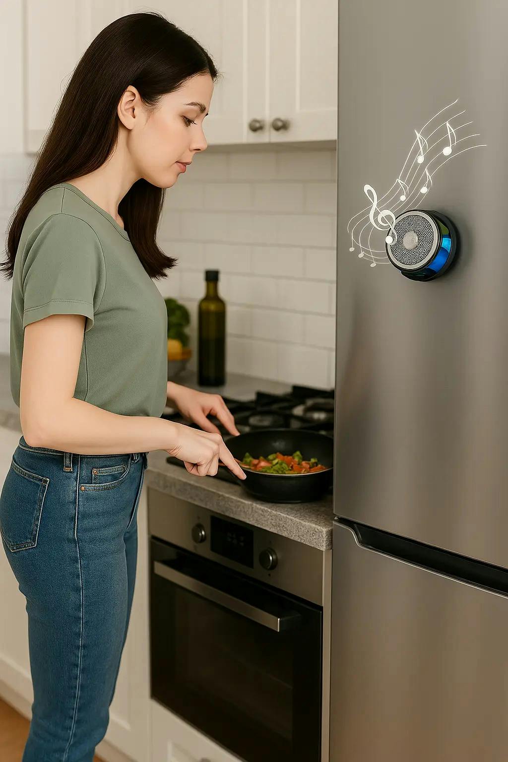 本体底面は強力マグネット式だから、料理シーンにも活躍!冷蔵庫に貼り付けて、レシピを確認したり、音楽を聴きながらストレスフリーな生活を送りましょう。