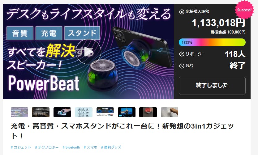 Makuakeで100万円達成した商品です