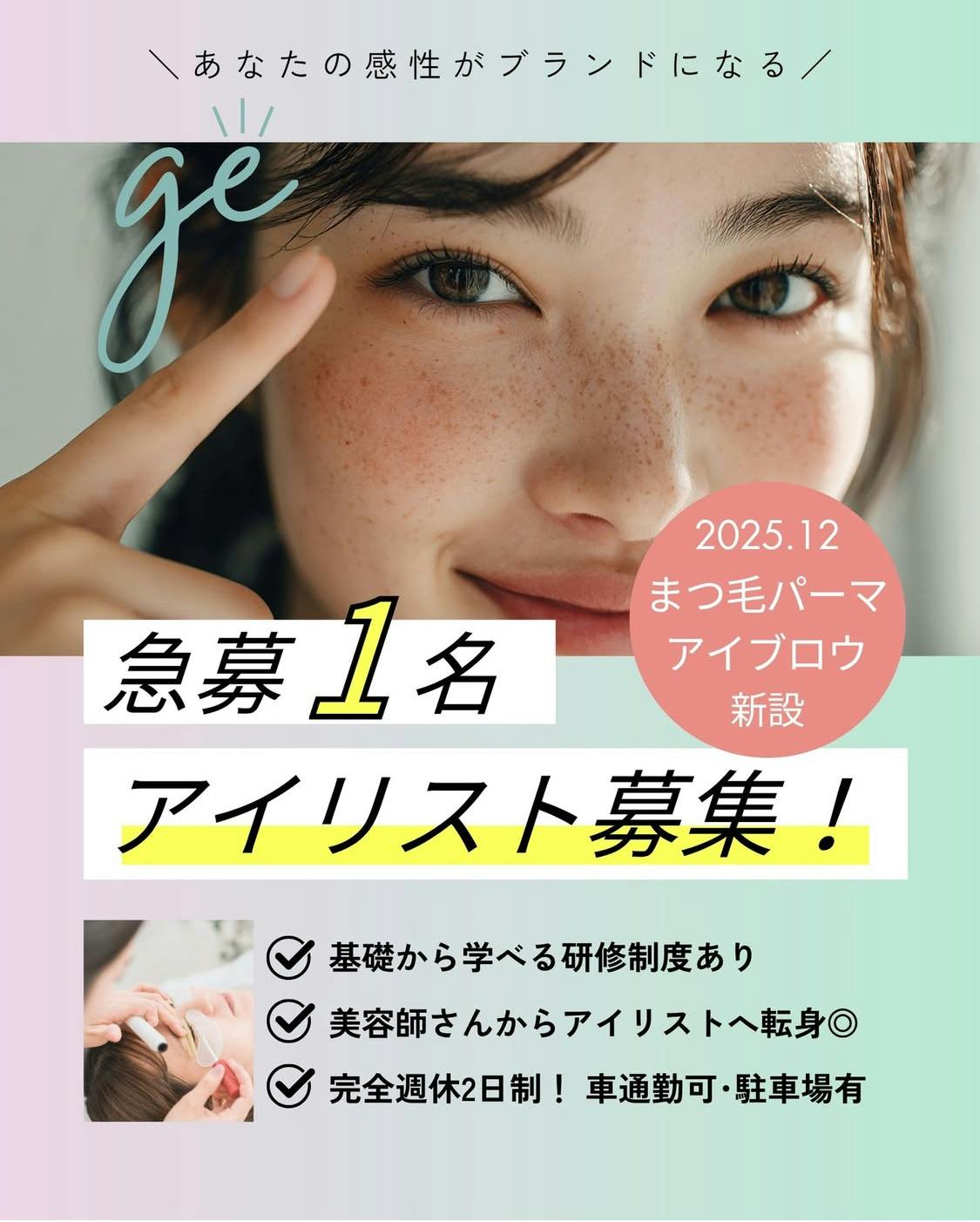 新設するまつ毛専用個室は、目元の施術をもっと快適に、もっとプライベートに楽しんでいただくための空間です。そして、そこに立つのはまつ毛専門のスタッフ。genkanが掲げる"凛としよう。輝く明日へ"というテーマに共感し、共に学び、美を届けていける仲間です。