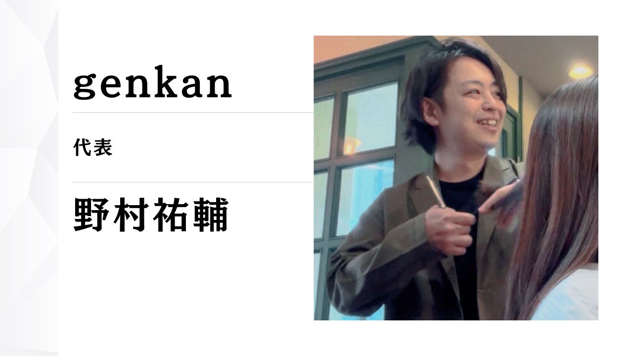 名古屋市・瑞穂通でプライベートサロン「genkan(ゲンカン)」を営んでいる、代表の野村祐輔と申します。数あるプロジェクトの中から、私たちのページをご覧いただき、本当にありがとうございます。