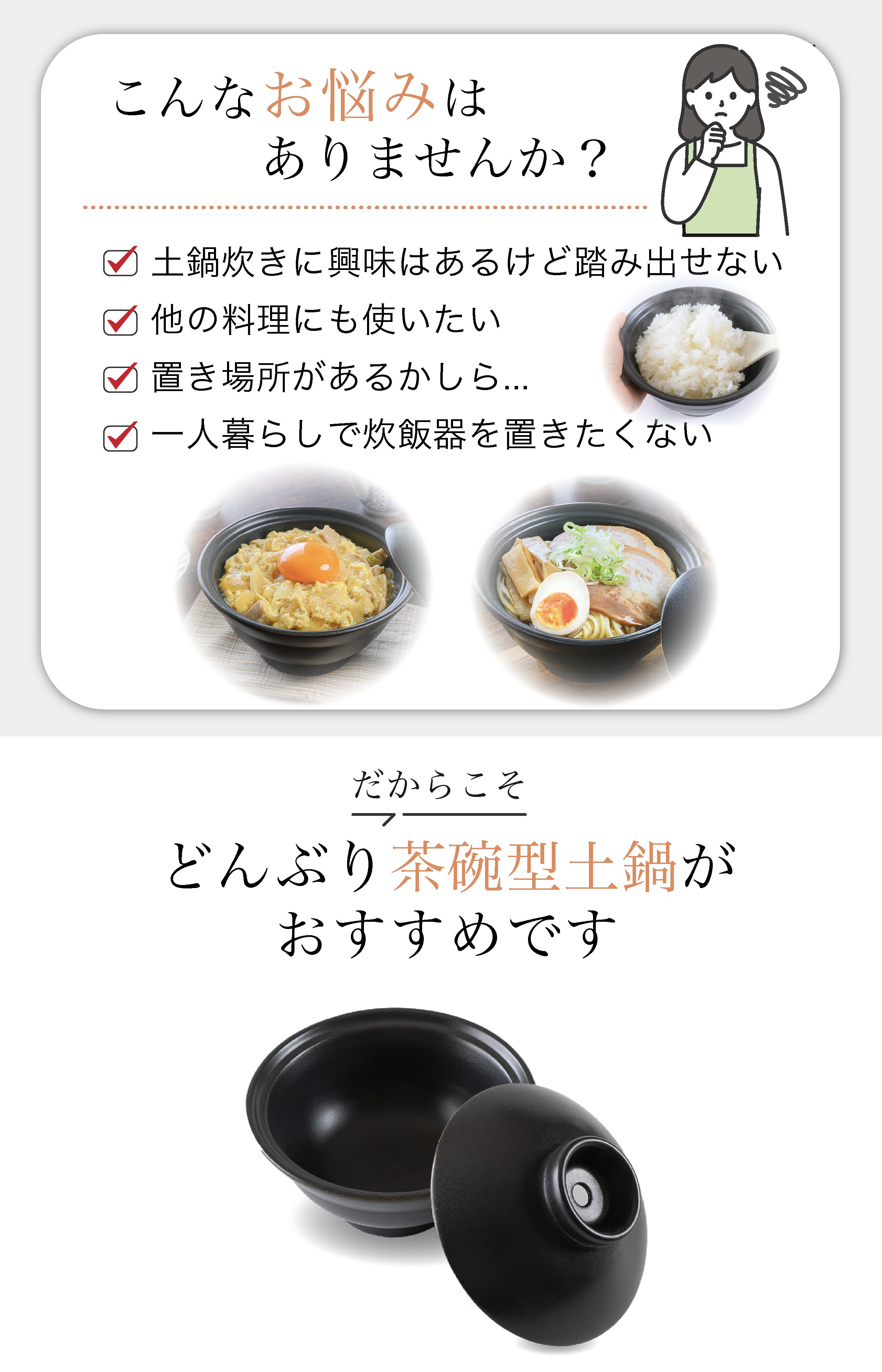 どんぶり茶碗のように気軽で、土鍋のように丁寧に。しかも電子レンジでも使える、「どんぶり × 土鍋」のハイブリッドな新しいかたちです。