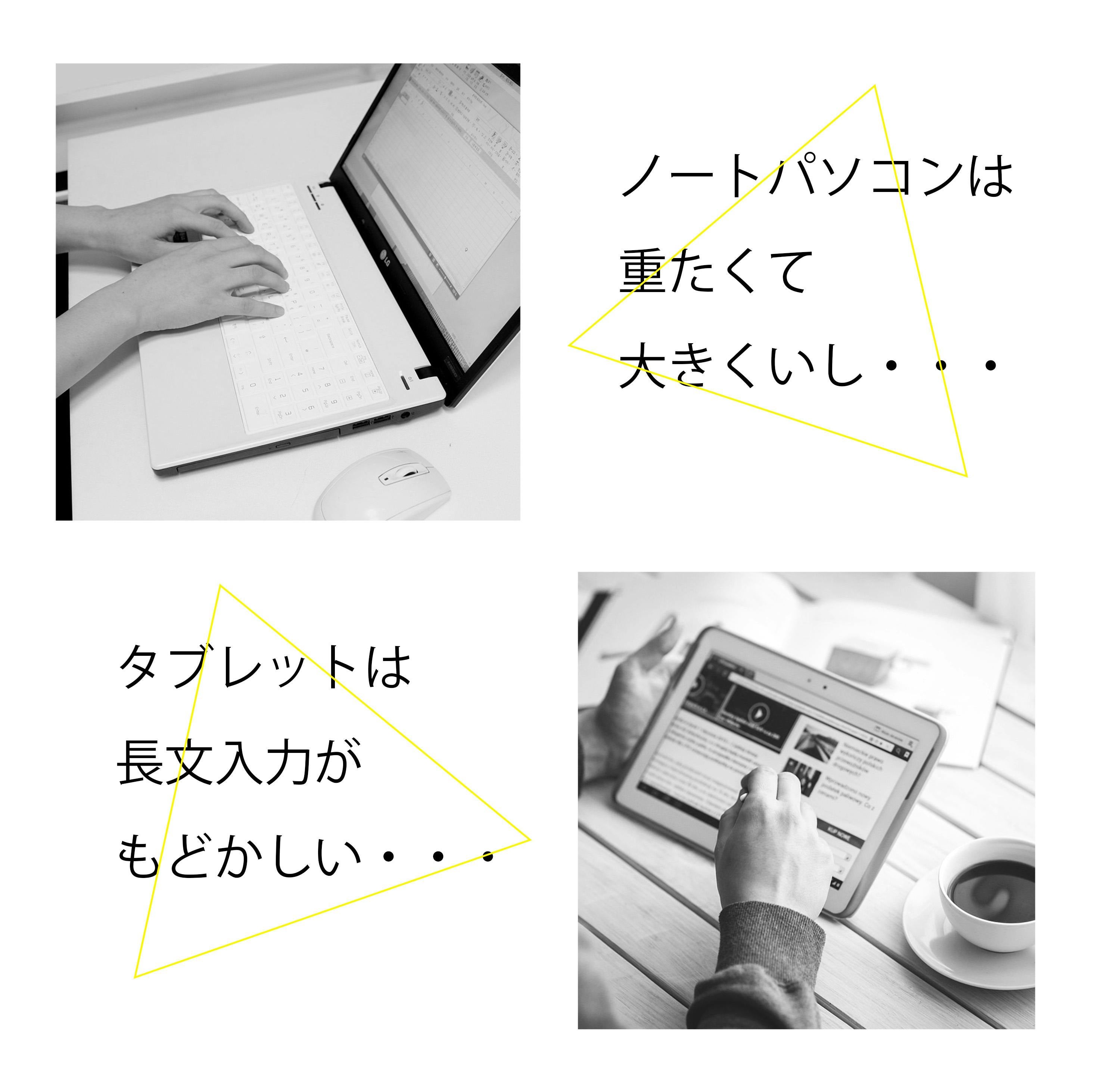 スマホやタブレットの普及により、大きくて重いパソコンの代わりに、スマホやiPadを持ち歩いている人が増えています。しかしながらスマホやタブレットでの長文の入力は、ほんとうにわずらわしく、タイピングだとたいした時間もかからない文章も、入力だけで骨が折れます。