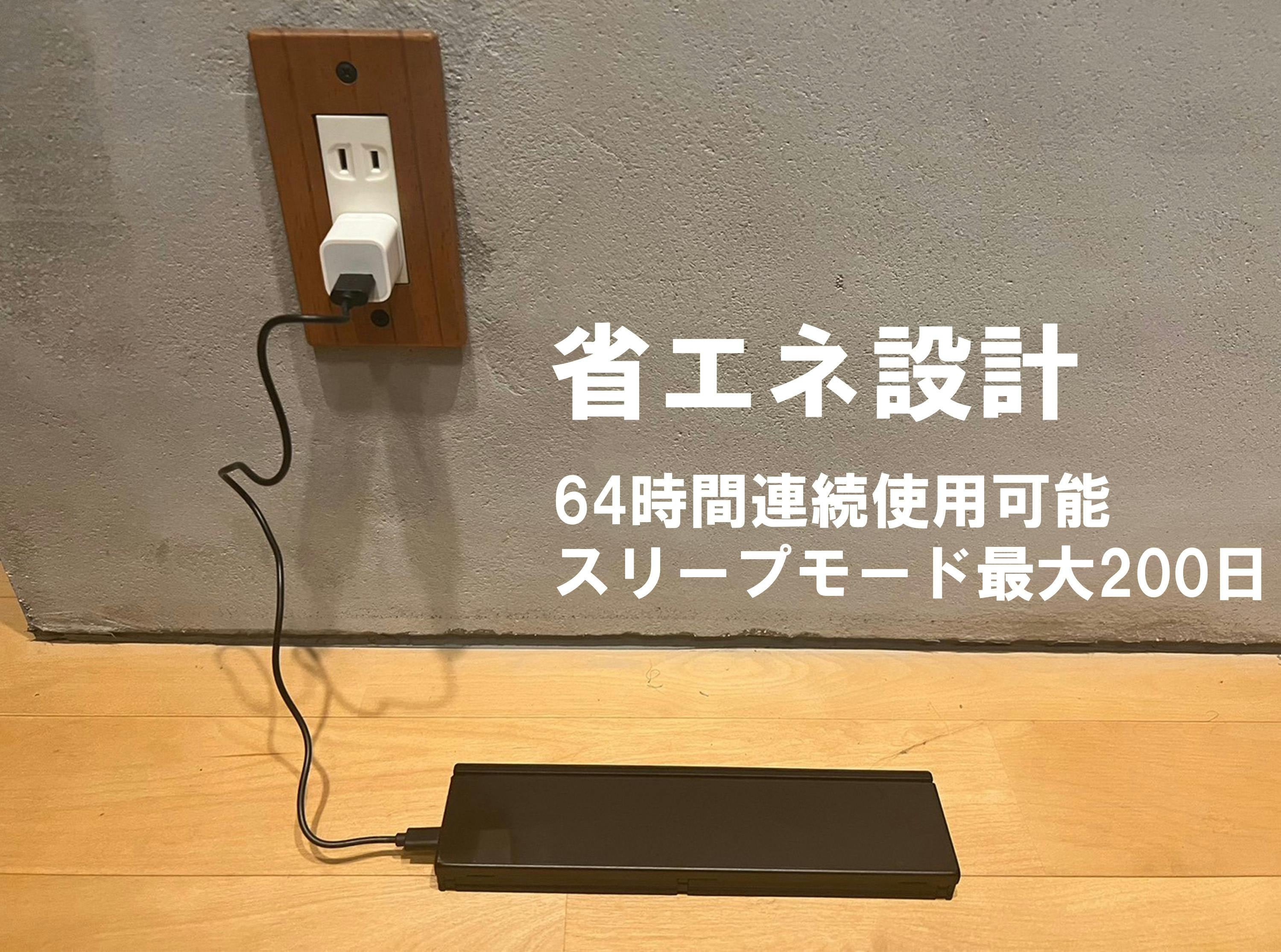 64時間連続使用可能。スリープモードは最大200日。自動オン/オフとスリープモード機能により、バッテリーを節約できるので長時間スリープを可能にしました。
