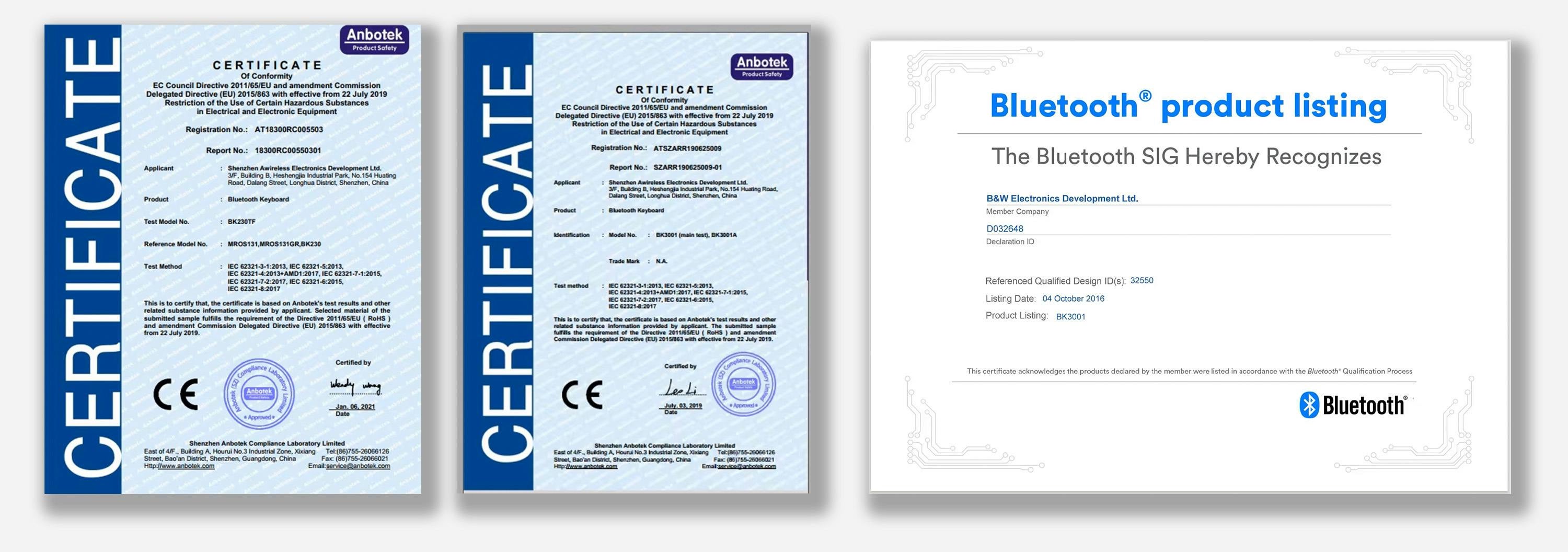 安心の機能と耐久性を兼ね備え、CEとBluetooth BQBの世界基準の安全認証を取得しています。