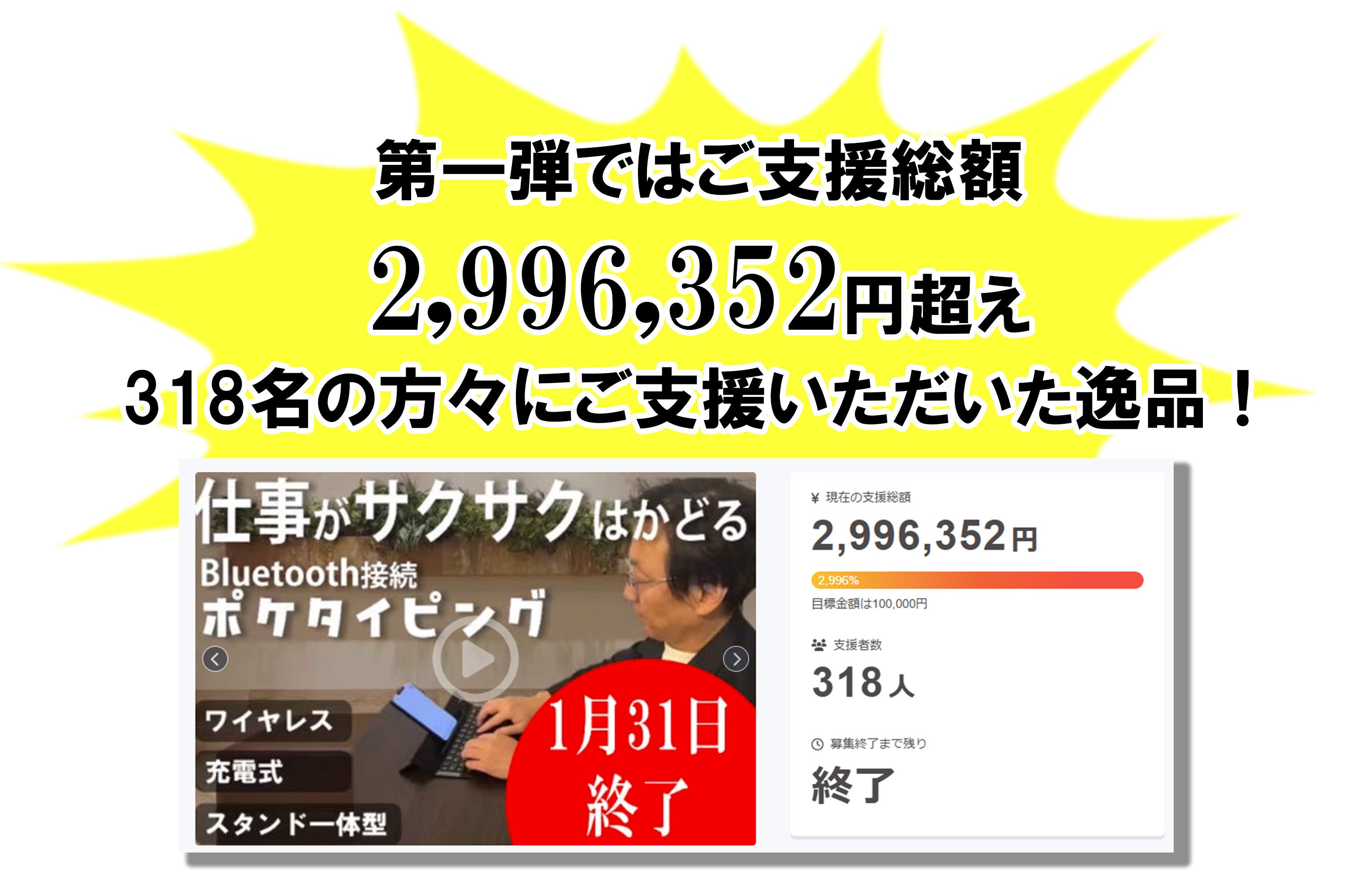 🌟第一弾プロジェクトでは、予想を大きく上回る反響をいただき、なんと 318名もの方々 から温かいご支援を賜り、ご支援総額は驚異の 2,996,352円を突破!