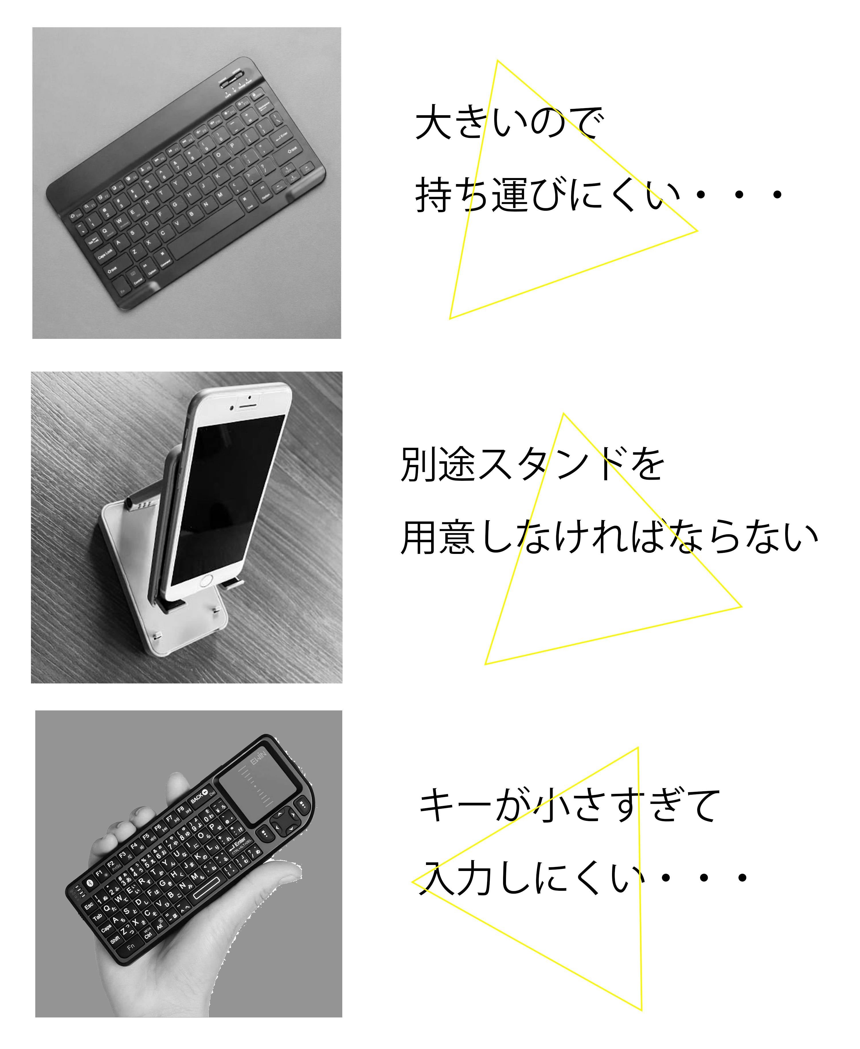 スマホの入力がいつもわずらわしく、スマホに簡単につなげられてタイピングできるガジェットがあればいいなぁといつも思っていました。
