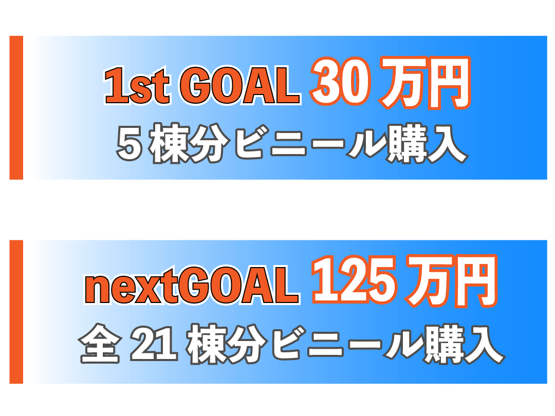 30万円のご支援が集まりますと来年5棟分のビニールが張り替えられます。