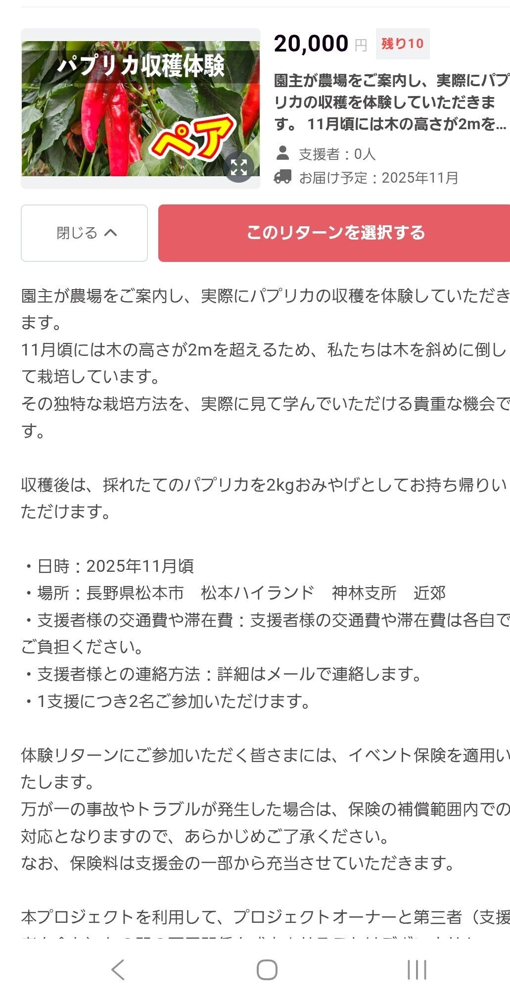 ご夫婦でのご参加だったのですが、キレイなパプリカを収穫出来た時の喜びを共有されたり、どっちが大きいパプリカを採るか?を楽しそうに競ったりしている姿を拝見して、収穫体験にペアチケットを追加しました!