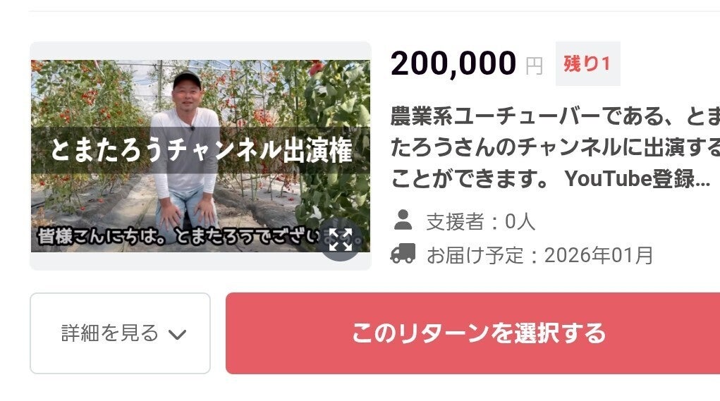 「とまたろうチャンネル出演権」私も所属しています農業系コミュニティーtomajoDAO(トマジョ ダオ)の代表でありフォロワー9万人のYouTuberとまたろう氏が、あなたの元に伺ってYouTubeを撮影します!