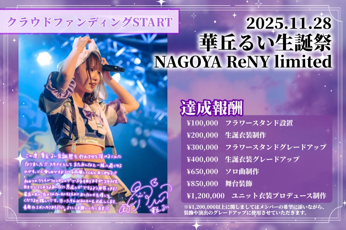 2025年11月28日に名古屋NAGOYA ReNY limitedで開催されるアイドル「華丘るい」の生誕祭です。今回は、彼女の生誕祭を成功させるために、彼女を応援する全てのファンの力を集結させたいと考えています。