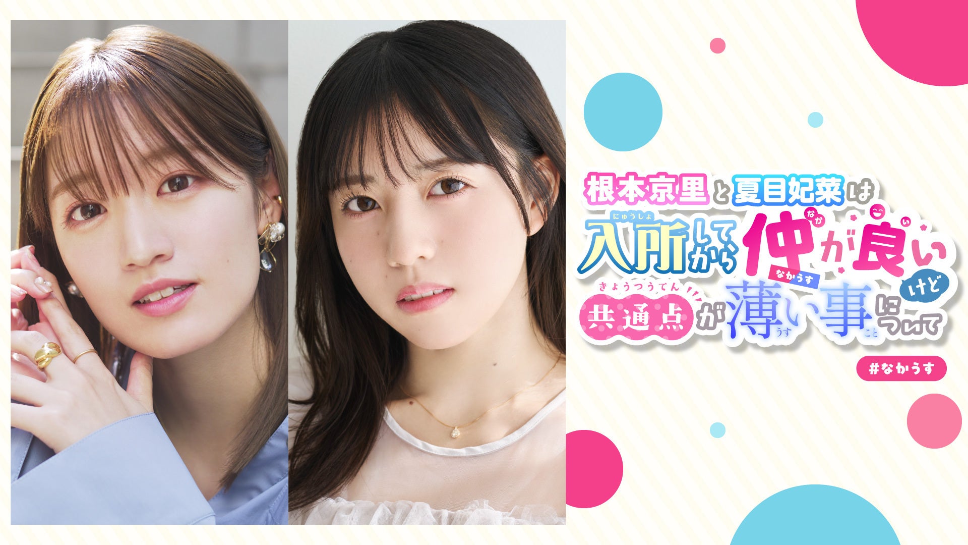 声優の根本京里・夏目妃菜による生放送トークチャンネル『根本京里と夏目妃菜は入所してから仲が良いけど共通点が薄い事について』です。番組立ち上げの際のアンケートで発覚した仲は良いけど共通点が薄いことを番組を通して深めることはできるのかをテーマに毎月検証トーク番組をお届けしています。