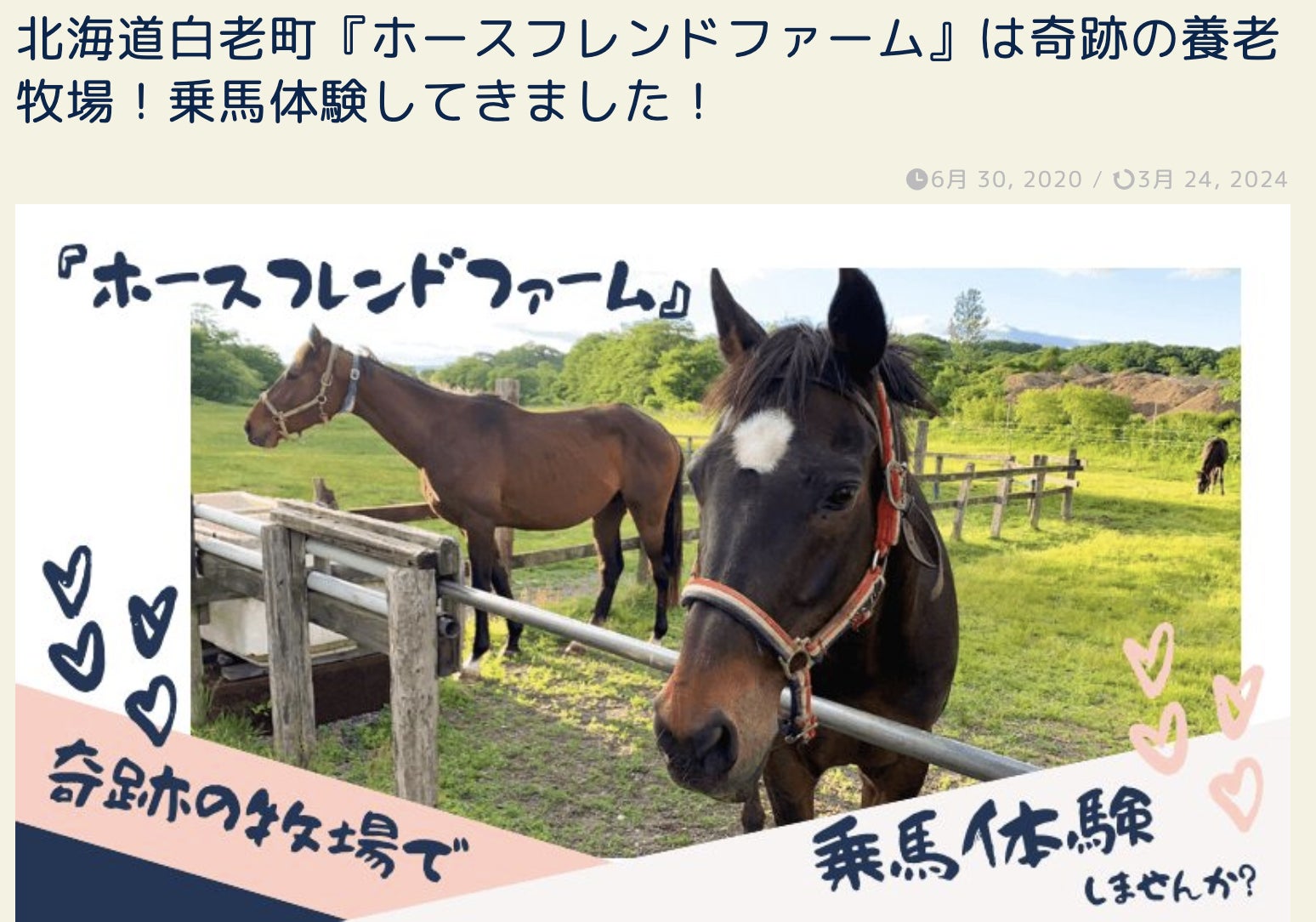 こんにちは。一般社団法人 馬のねがいです。毎日、多くの方々の温かいご支援、本当にありがとうございます。今日は、このクラウドファンディングをサポートしてくださっているCAMPFIRE公式メディアパートナーのナビさんをご紹介しますね。ナビさんは、北海道白老町の情報発信サイト『 しらおいナビ 』を運営していて、私たちと同じく、ホースフレンドファームを応援している方で、こんな記事を書かれています。▶︎ 北海道白老町『ホースフレンドファーム』は奇跡の養老牧場!乗馬体験してきました!プロジェクト開始当日に白老で起こった大雨による災害で、牧場全体が浸水してしまい、甚大な被害を受けてしまったホースフレンドファーム。その支援のためにナビさんも、たいへんな作業を手弁当でお手伝いくださっていて感謝の気持ちでいっぱいです。本当にありがとうございます。そして、ナビさんは、これまでに9件のプロジェクトをサポート。支援総額1.3千万円を超えたそうです。クラウドファンディングに挑戦したい方やご興味のある方は、ぜひナビさんに相談してみて下さい。しらおいナビ 公式LINE ▶︎ https://lin.ee/GDLUbRd日本全国、どこからでもOKだそうです。プロジェクトの方も、今週末で終了です。引き続き応援よろしくお願いします。𖤣𖥧𖥣𖡡𖥧𖤣𖤣𖥧𖥣𖡡𖥧𖤣𖤣𖥧𖥣𖡡𖥧𖤣𖤣𖥧𖥣𖡡𖥧𖤣【蹄鉄しめ縄】引退馬と人の想いをつなぐ〜午年に届ける幸せを願うプロジェクトこのプロジェクト期間は、2025年11月16日(日) 23:59まで。下記の【シェアしてプロジェクトをもっと応援!】では、Xでの投稿、Facebookでのシェア、LINEへの送信が簡単にできます。上記のURLをコピーしてお送りいただいても、大変嬉しいです!シェアが「馬のねがい」の活動費となり、一頭でも多くの馬を支援することにつながります。どうぞ、よろしくお願いいたします。一般社団法人 馬のねがい( Instagram ・X )