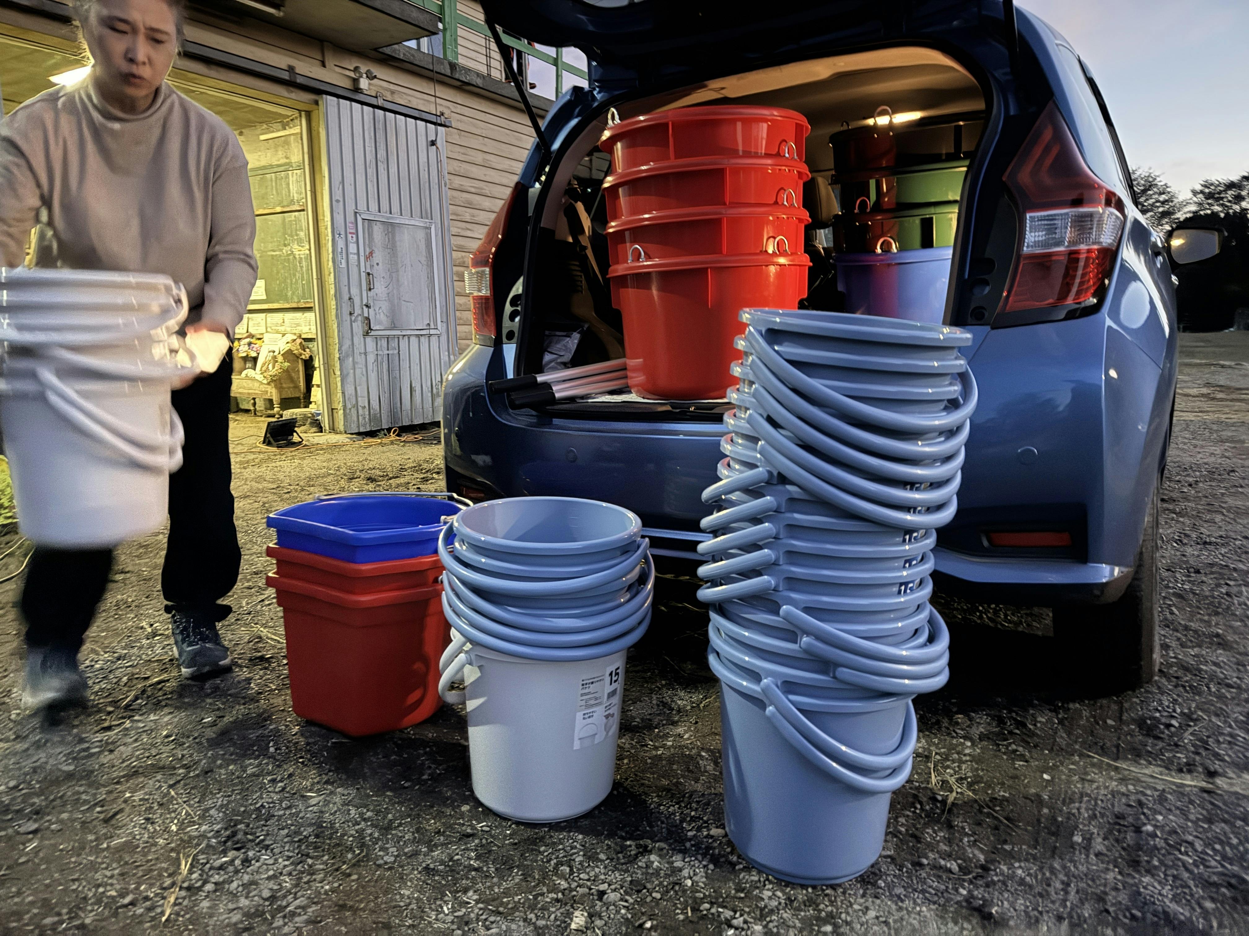 引退馬協会と馬のねがいからはバケツ類の寄付!