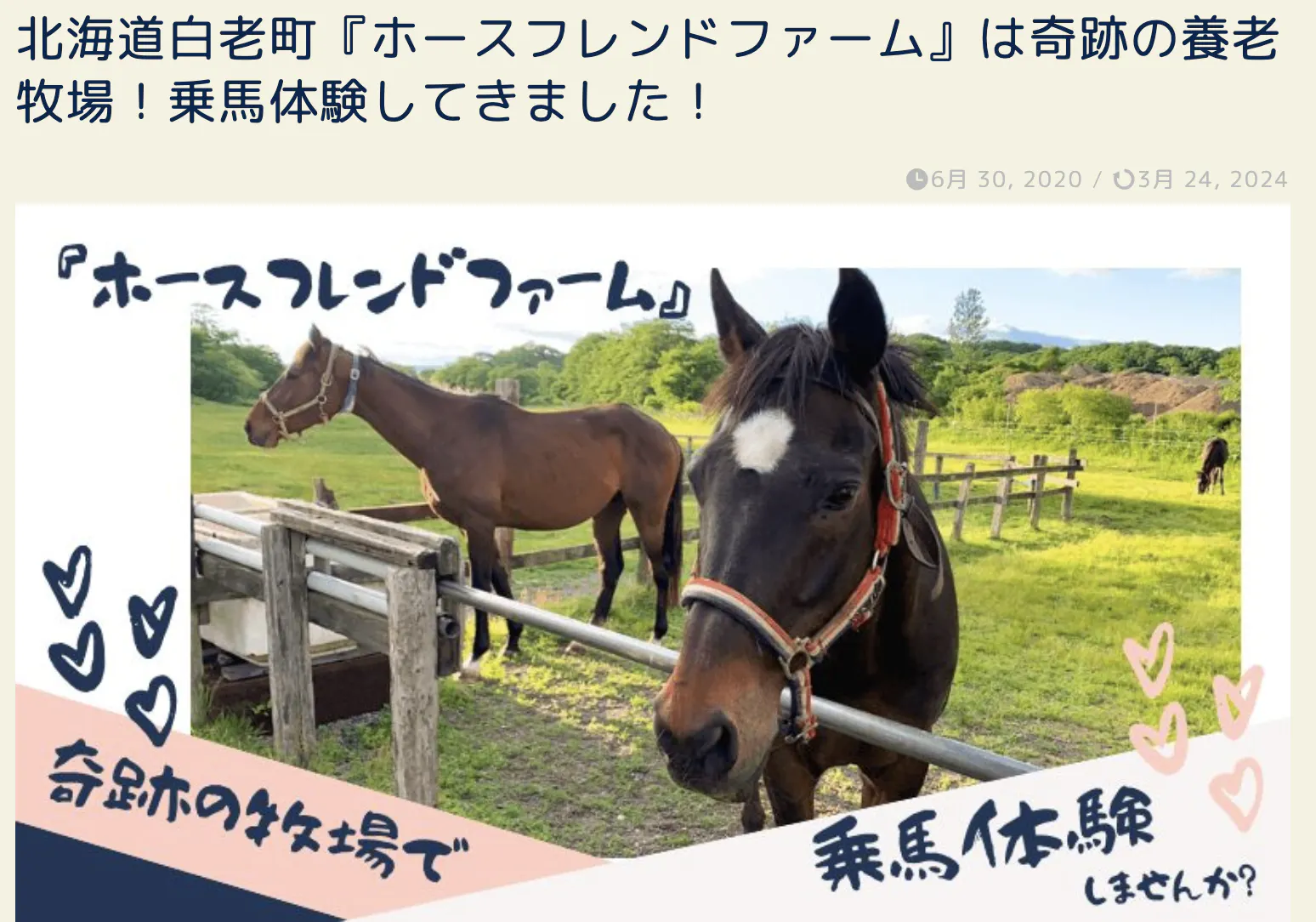 ▶︎ 北海道白老町『ホースフレンドファーム』は奇跡の養老牧場!乗馬体験してきました!