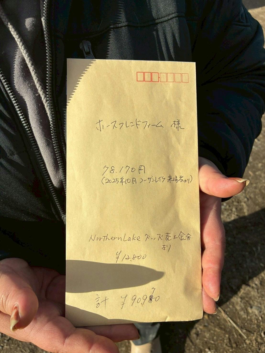 また、ノーザンレイクの売店で売れた『馬のねがい』のグッズの販売利益も受け取ってきました。