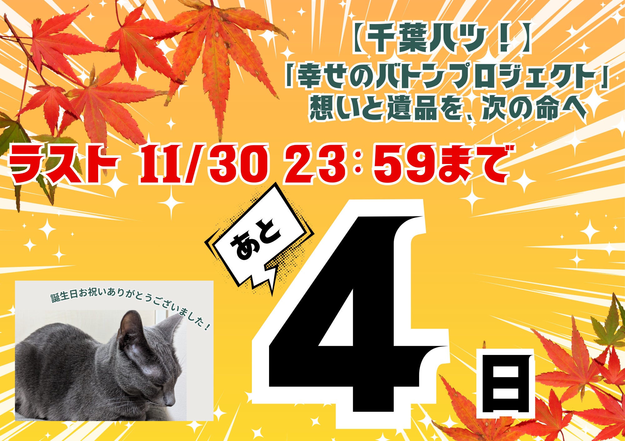クラウドファンディング終了まで、残すところあと4日となりました。皆様の温かいご支援、本当にありがとうございます。