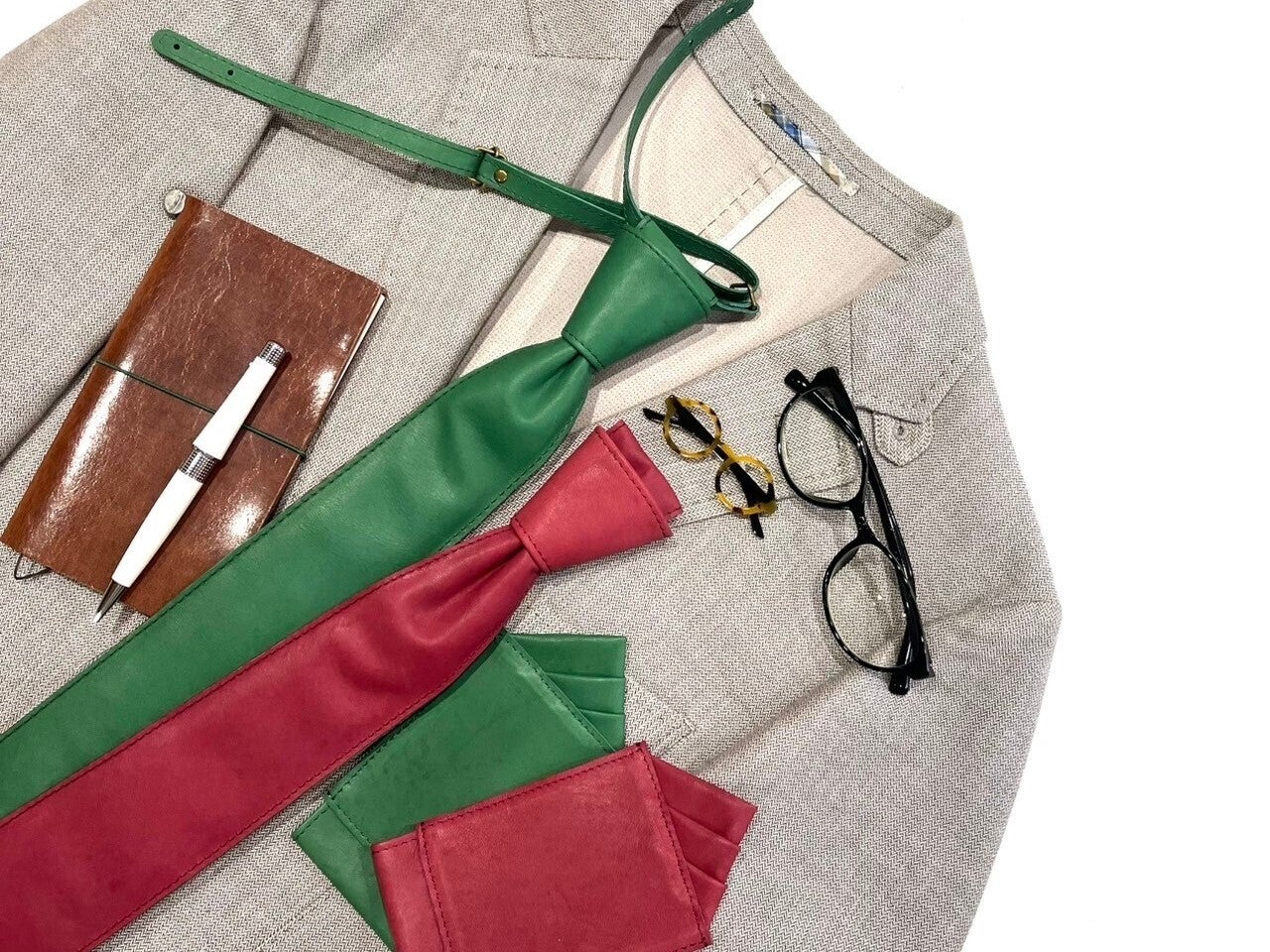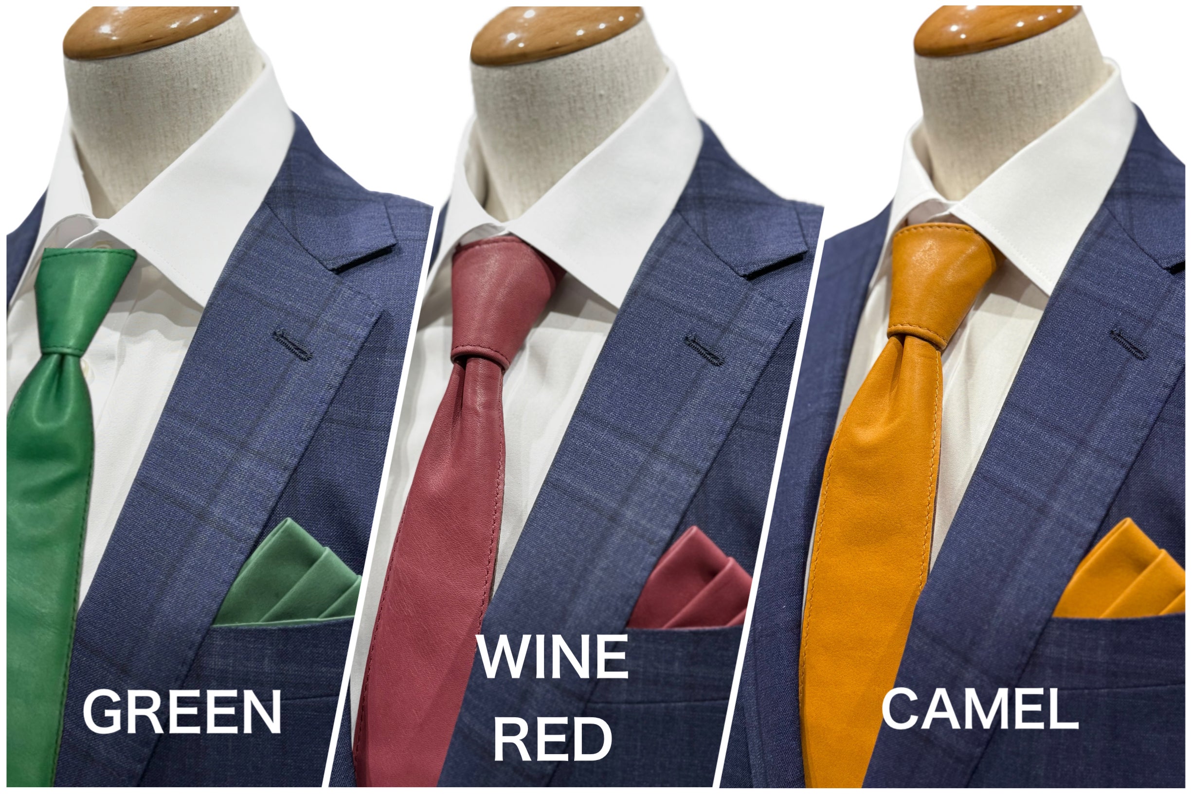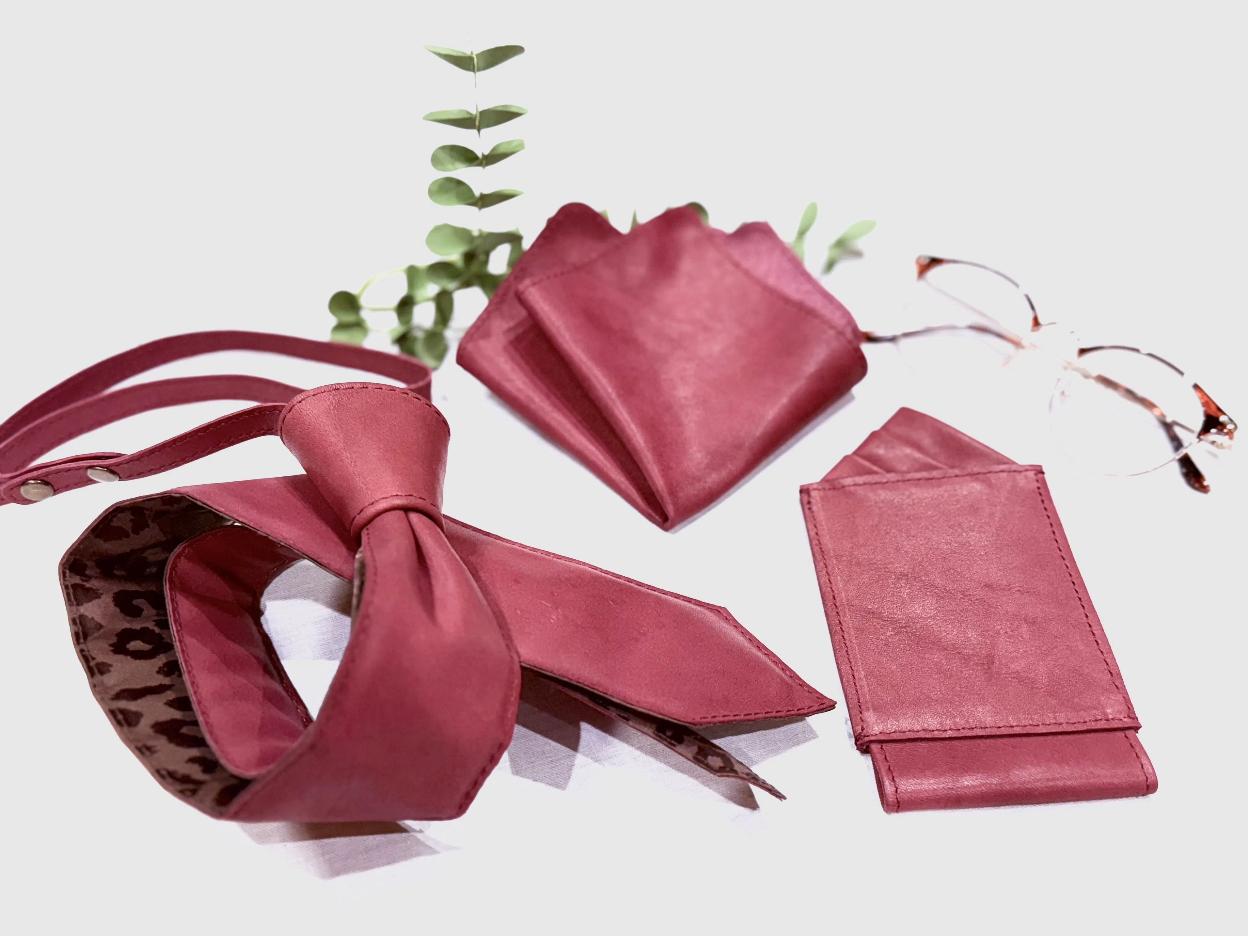 その第一弾として、カラフルなレザーネクタイや一緒に楽しめるチーフをご用意しました。