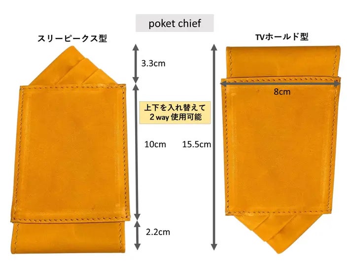 2wayポケットチーフ上下で異なるデザインを採用、2wayで楽しむことが出来ます