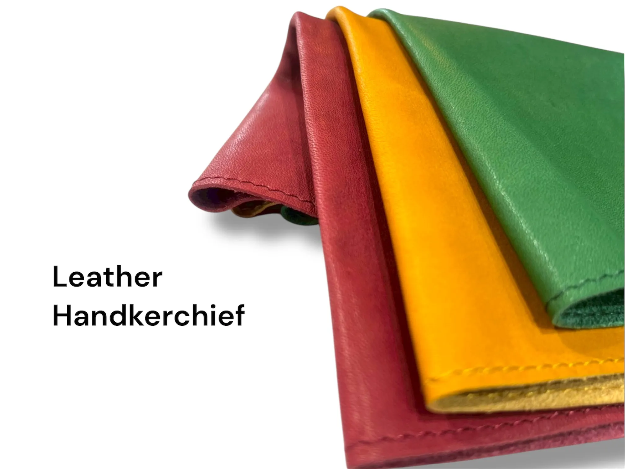 また、ハンカチーフは薄くて柔らかいレザーため、様々な形で胸元に挿すことが出来ます。