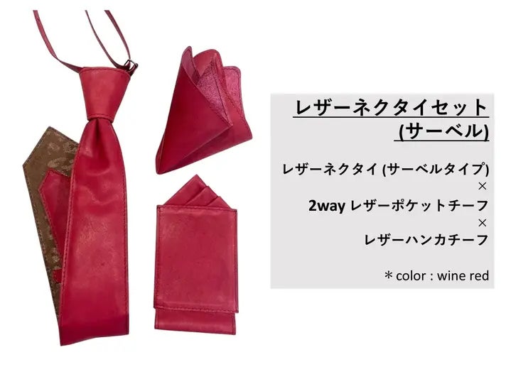 国産レザーのネクタイとチーフのセット。