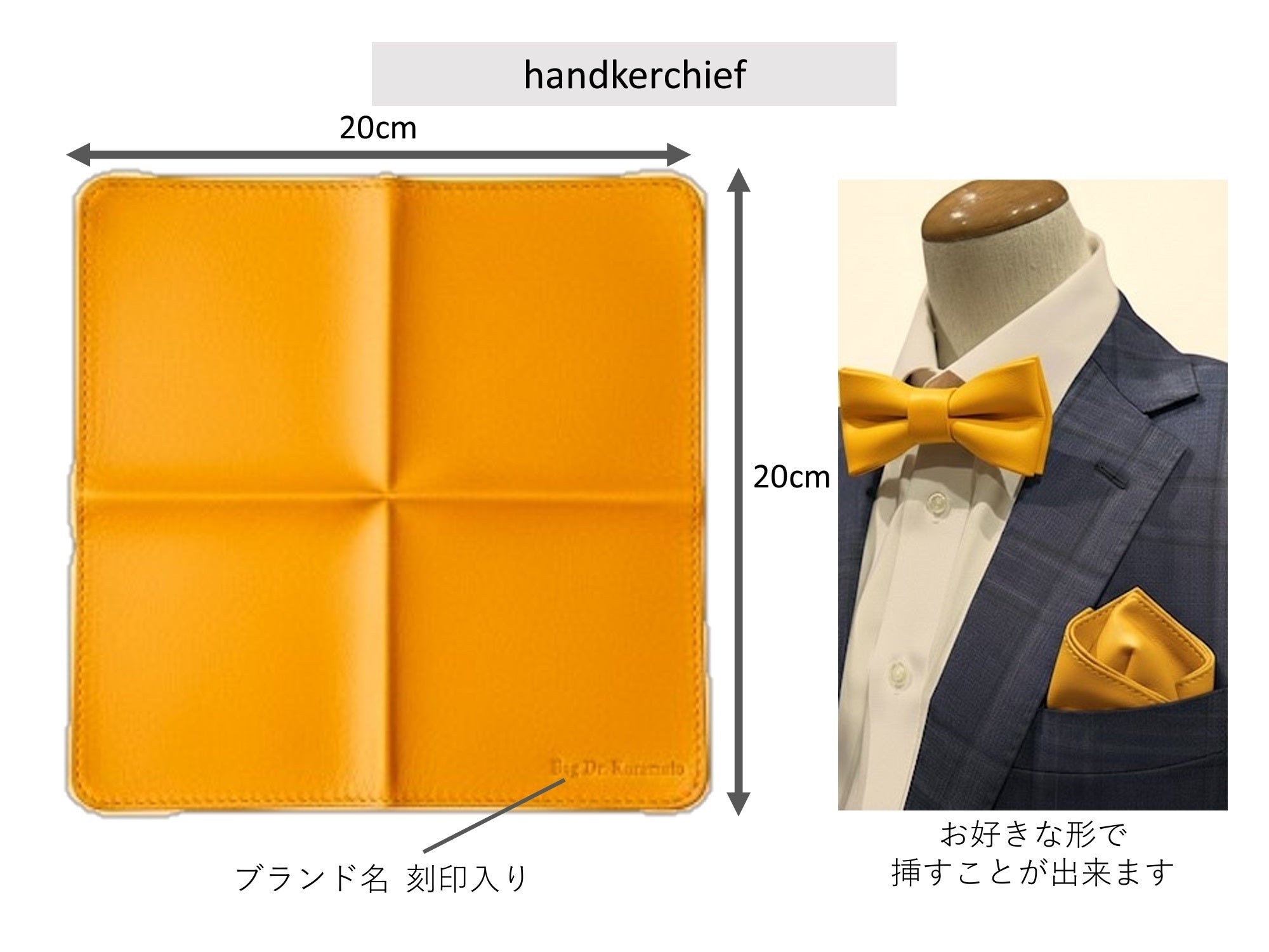ハンカチーフ薄くて柔らかいレザーため、様々な形で胸元に挿すことが出来ます。