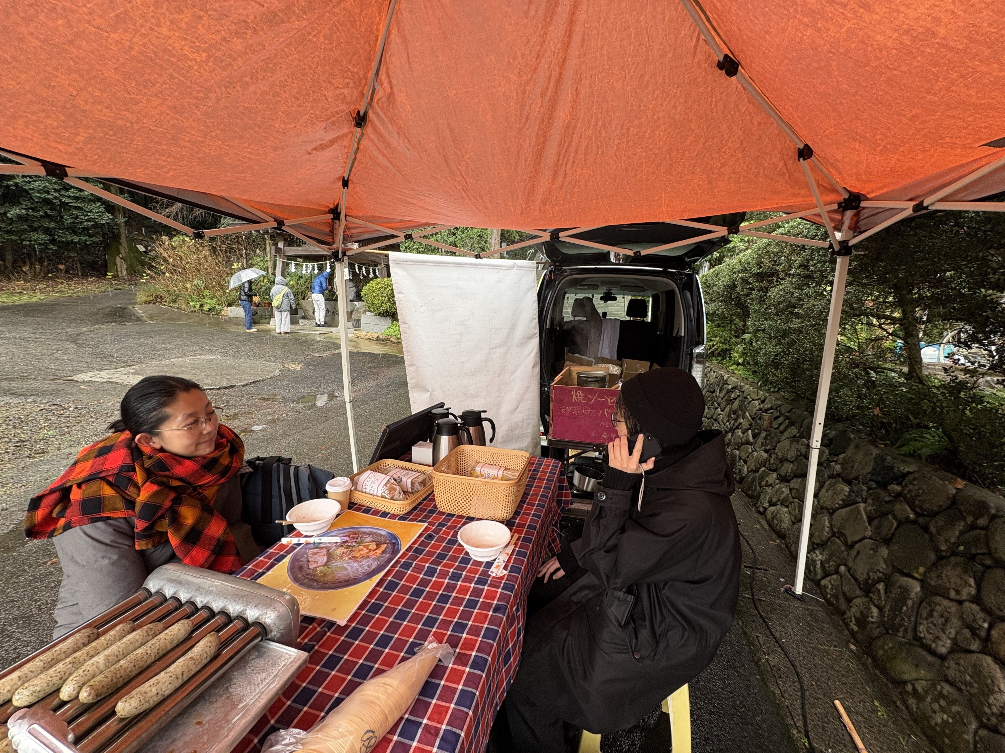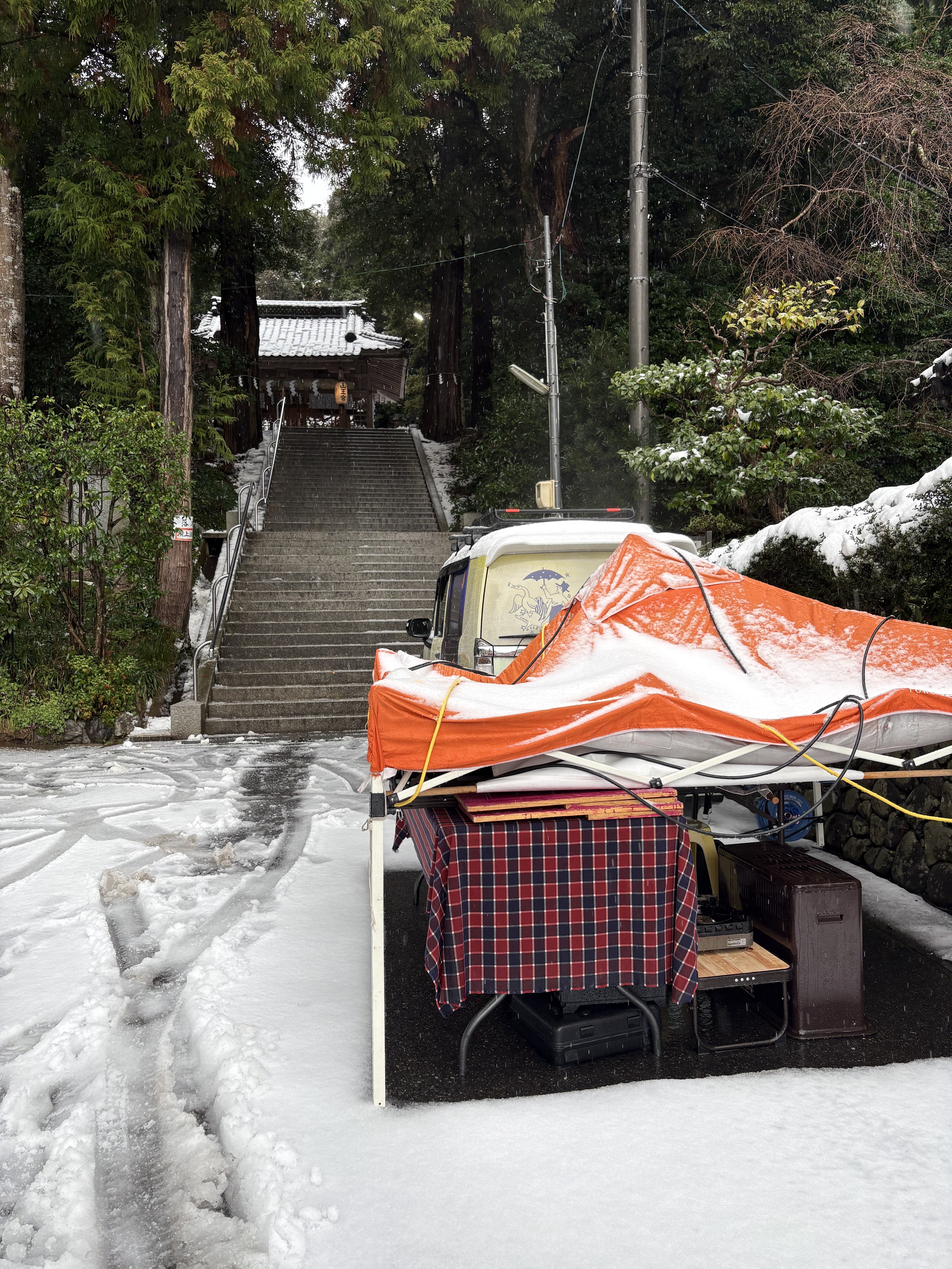 そして明けましての御正月。近くの日枝神社 山王さん鳥居前で冷たい雪と冷え冷え雨の中、例年通り出店してました。