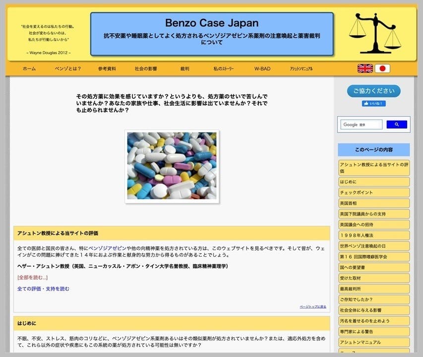 While serving as founder and manager of the “July 11 World Benzodiazepine Awareness Day” (W-BAD) campaigning initiative, I initially established the Benzo Case Japan (BCJ) website, which hosts The Ashton Manual in both Japanese and English.