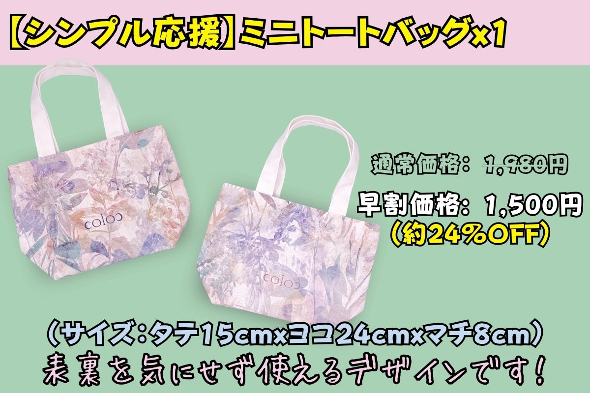 ・ミニトートバッグx1(サイズ:タテ15cmxヨコ24cmxマチ8cm)