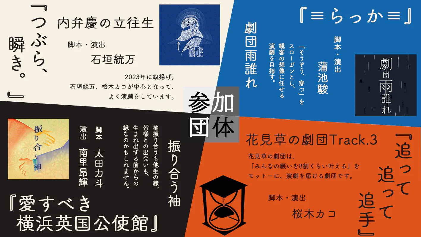 横浜には学生や若手の演劇団体が多く存在する一方、こうした団体が一堂に会する機会となるイベントが少ないという実情があります。