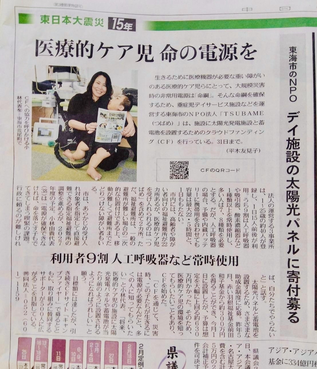 本日2026年3月12日、中日新聞朝刊の県内版に、クラウドファンディングについての記事を掲載していただきました。