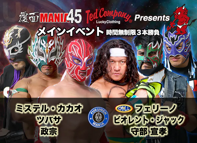 2025/11/06 14:00<メインイベント>時間無制限一本勝負覆面MANIAスーパーライト級選手権試合スペル・チノ(王者) VS <第三試合>の勝者 もっと見る対戦カード <セミファイナル>