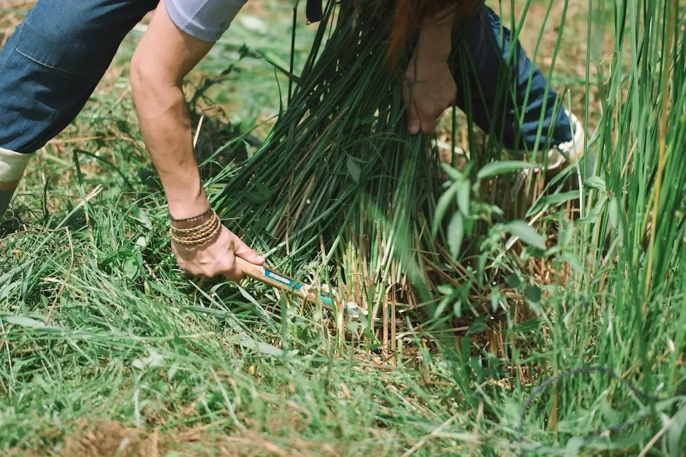 七島藺稲刈りの様子