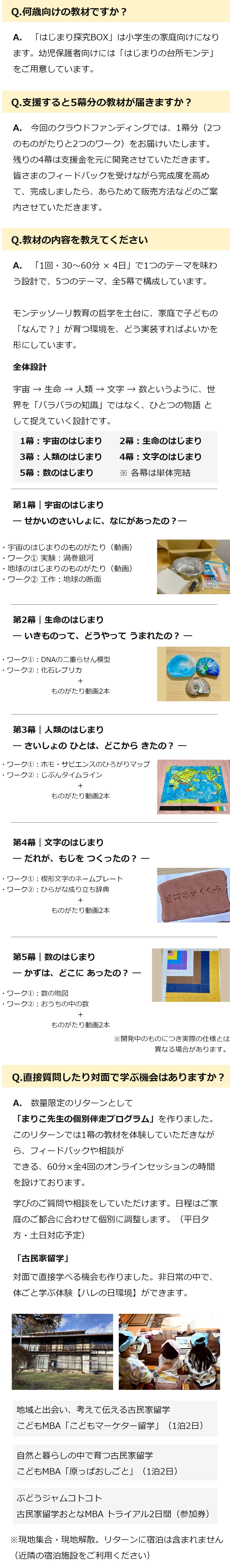第2~第5幕も家庭でそのまま使える完成版教材が揃い、日常に子どもの「なんで?」を定着させる仕組みを社会に届けられます。