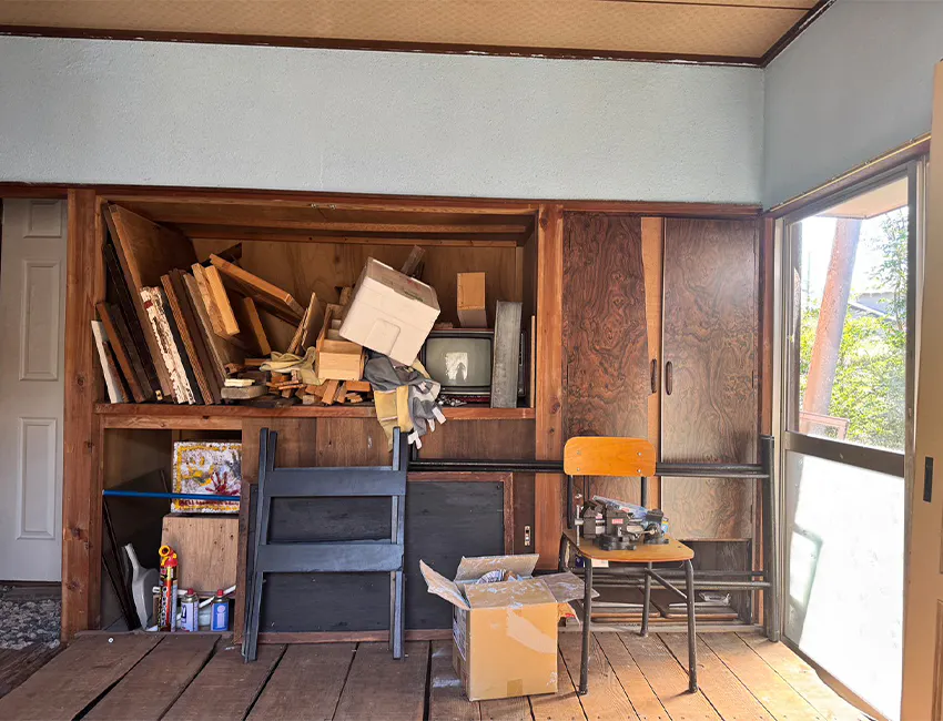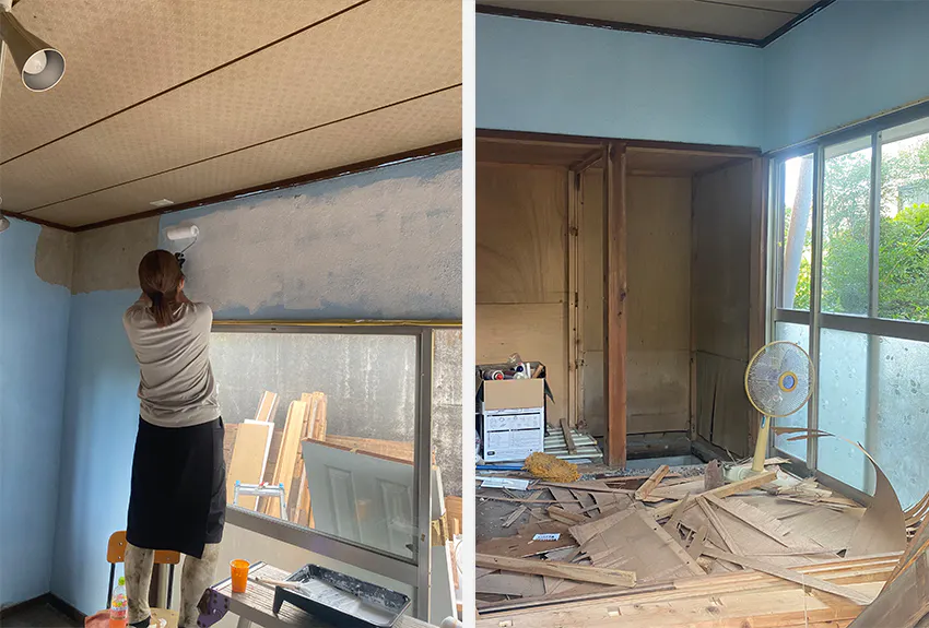手つかずの部屋の古材や古道具の片付けをしながら、「美容所」として開設できるように地域の保健所や行政の方々にアドバイスを受けながら室内設計や工事、必要備品の準備などをしています。