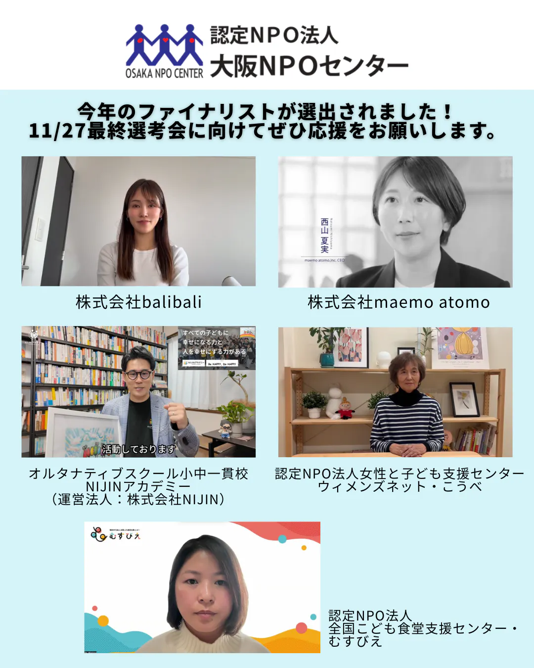 今回はファイナリスト5団体のPR動画をご紹介します。