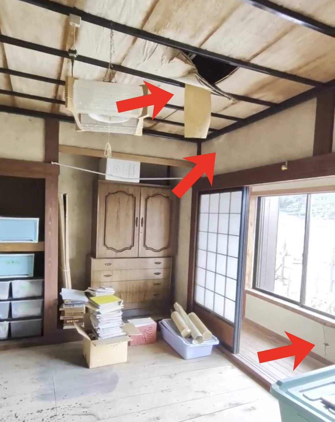 壁のひび割れが至る所にあります