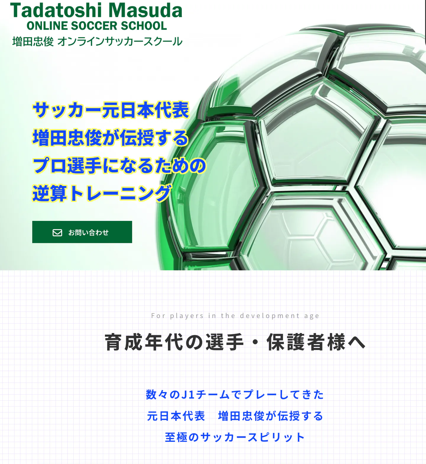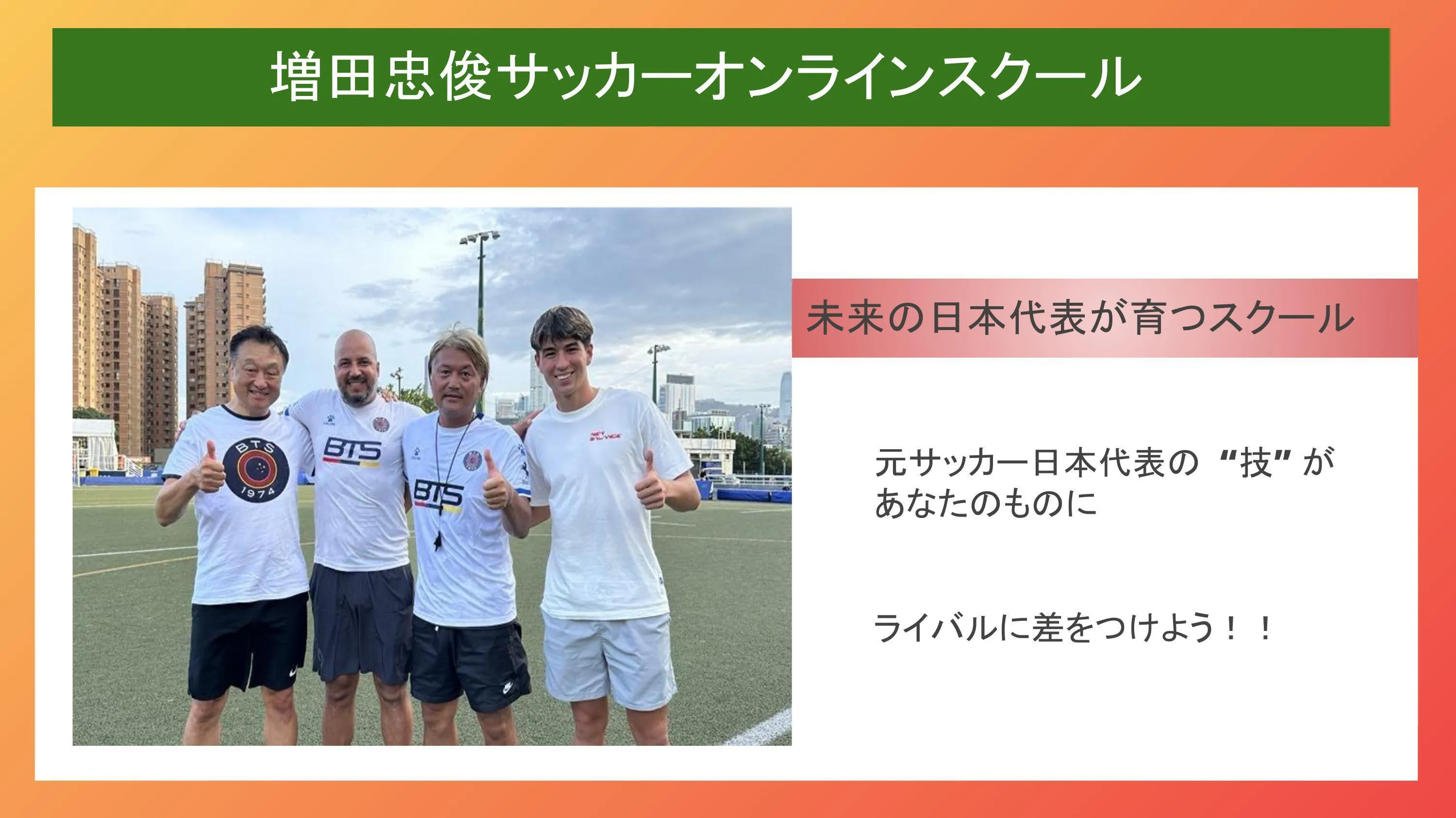 はじめまして、元サッカー日本代表の増田と申します。現役時代は多くの皆様に応援していただき、心から感謝しております。引退後は次世代の育成に情熱を注ぎ、約20年自身のチーム・スクールなど、全国の子どもたちに直接指導を続けてまいりました。