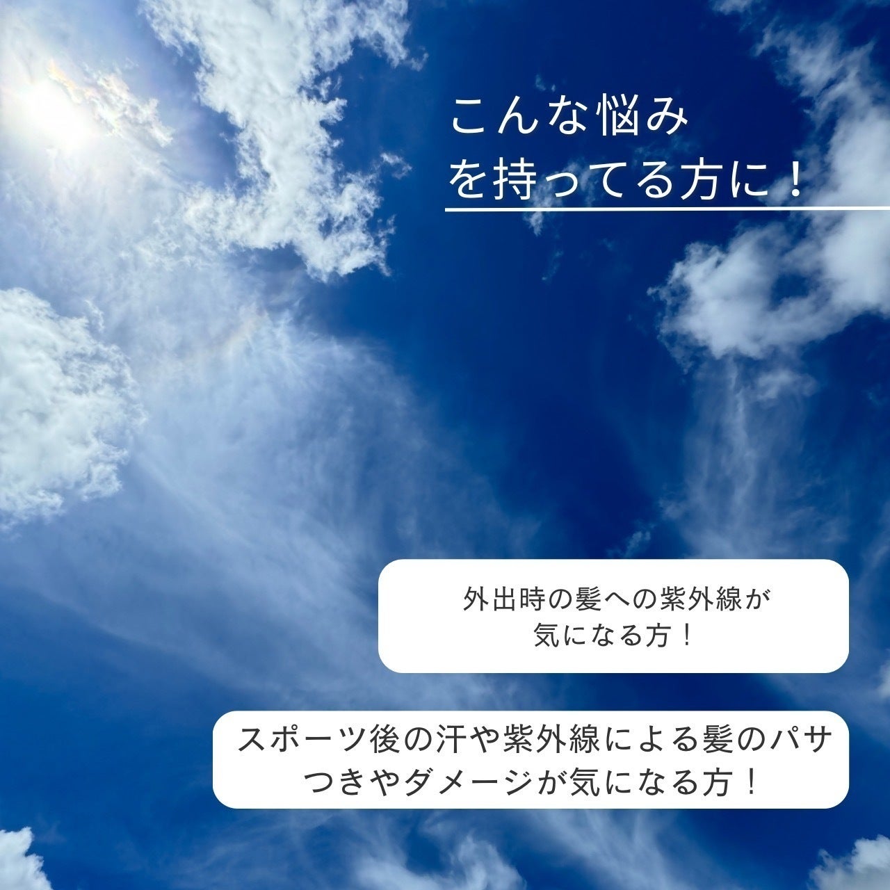 スポーツをする人にはより楽しんで貰えるように。また、スポーツをする人だけでなく、外出時の紫外線が気になる方の髪の悩みを抱えるすべての方々に、より良い生活を提供したいと考えています。そして、スポーツと日常で使っていただくことで新しいい繋がりができるよう創造していきます。