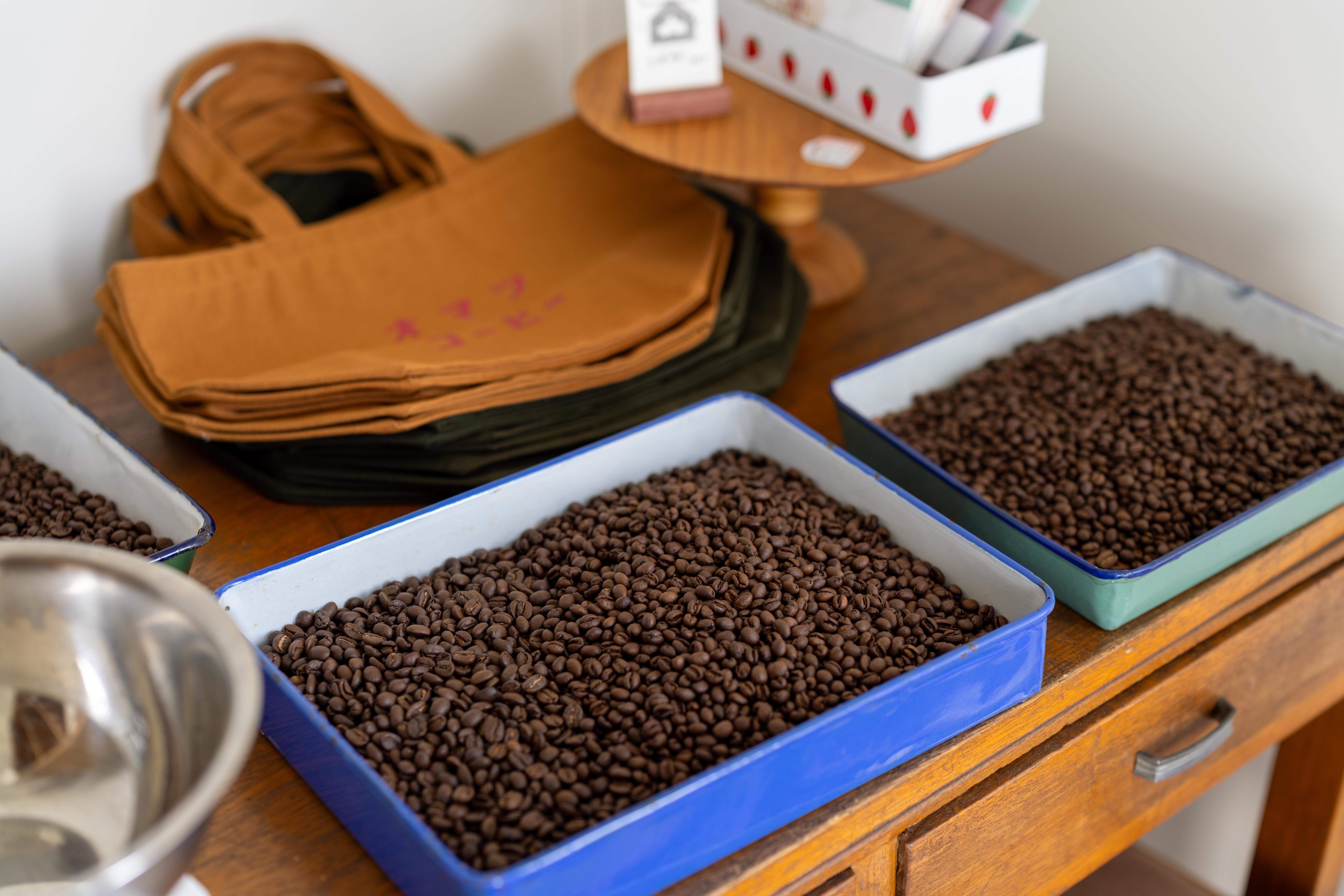 コーヒー豆は自家焙煎しており、深煎りの「こっくり」、浅煎りの「すっきり」はオリジナルブレンドで展開。
