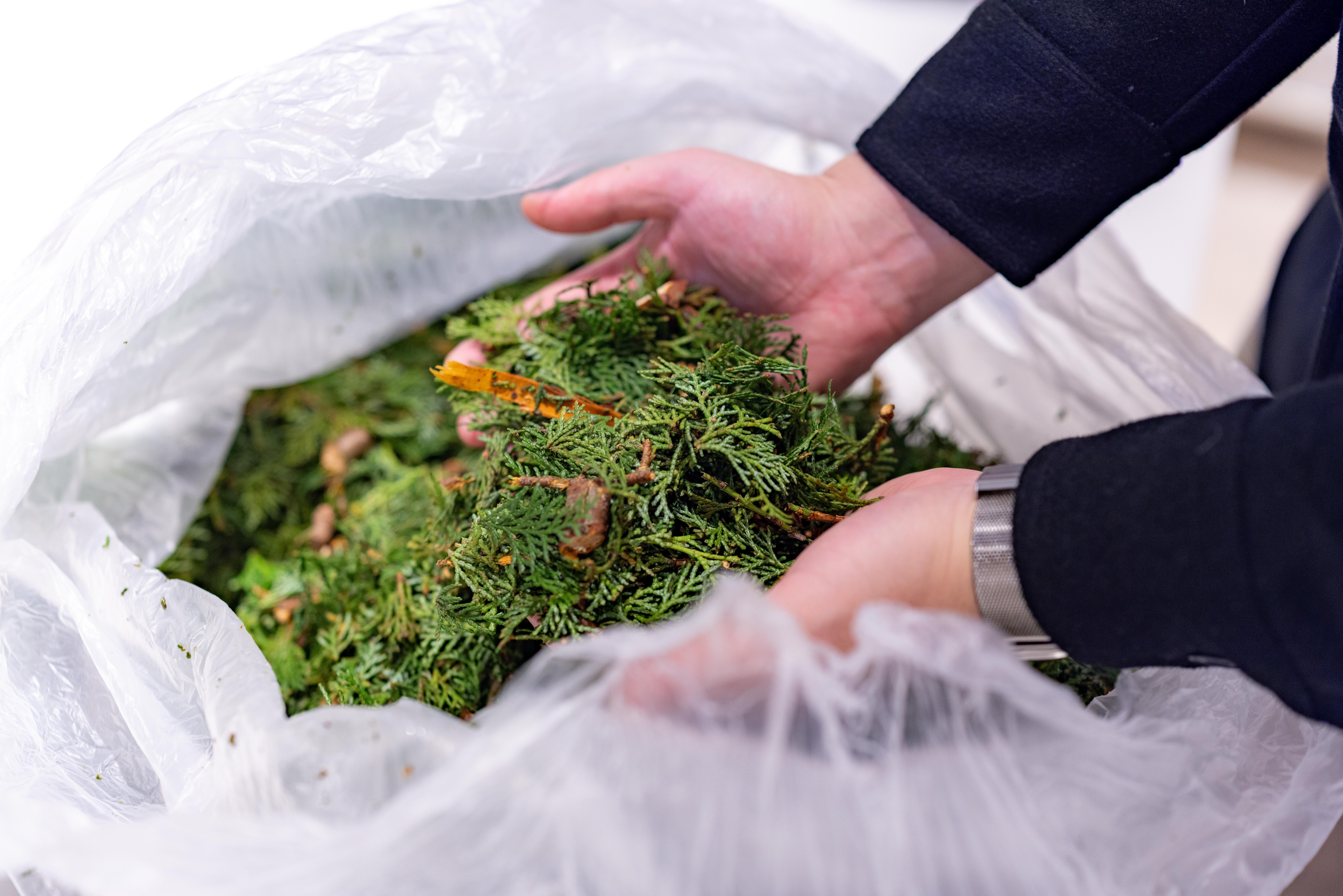 素材となるヒノキの枝葉や柚子はブランドの代表・藤本さんが自ら山に入り入手しています。地元の林業家や果樹を持つ地主さんとつながり、今は使われていない資源を活用させていただき、地域に価値を還元する。