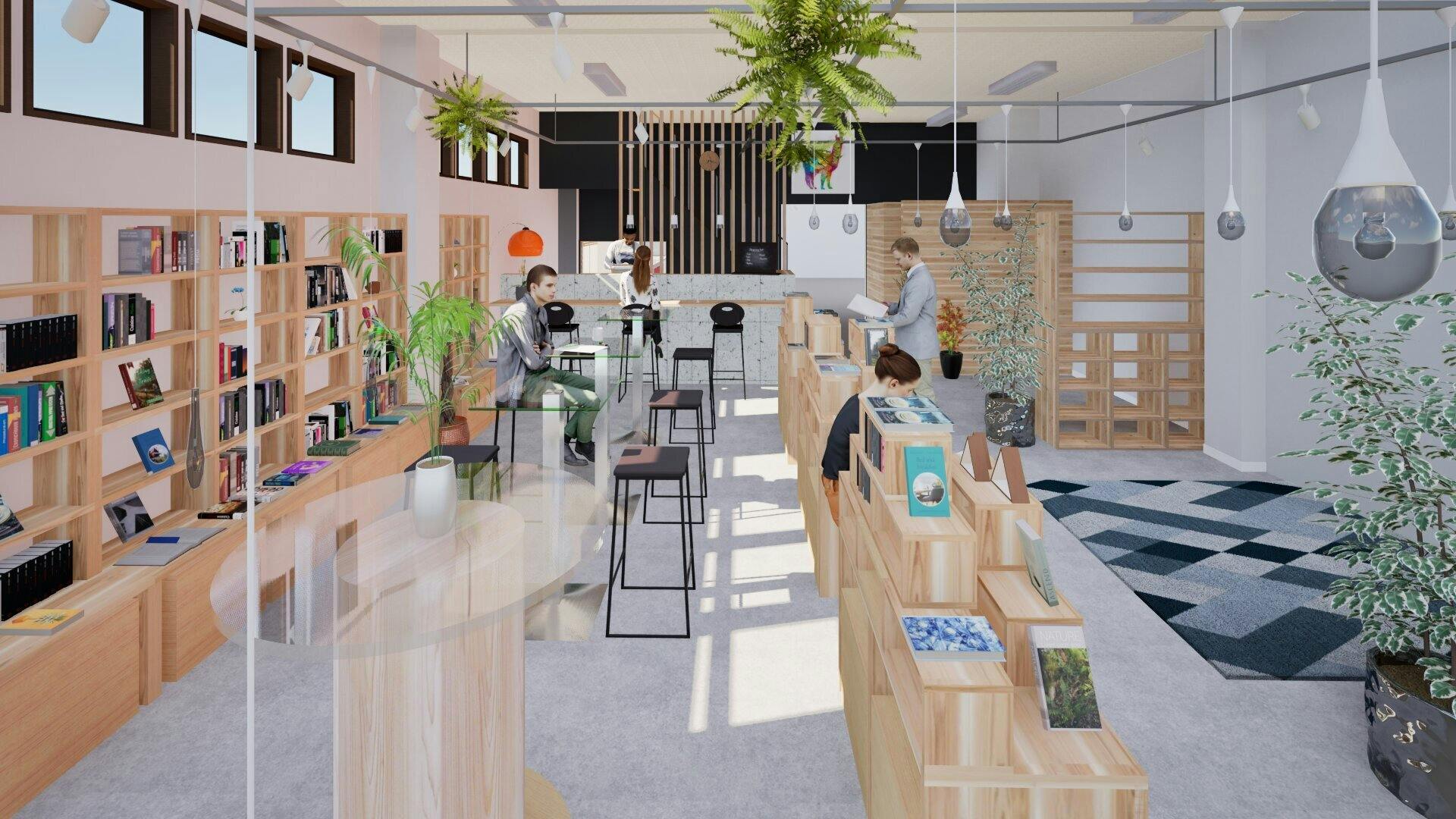 エントランスを入るとあるブックバー「本とビール カモシカ」(イメージ)