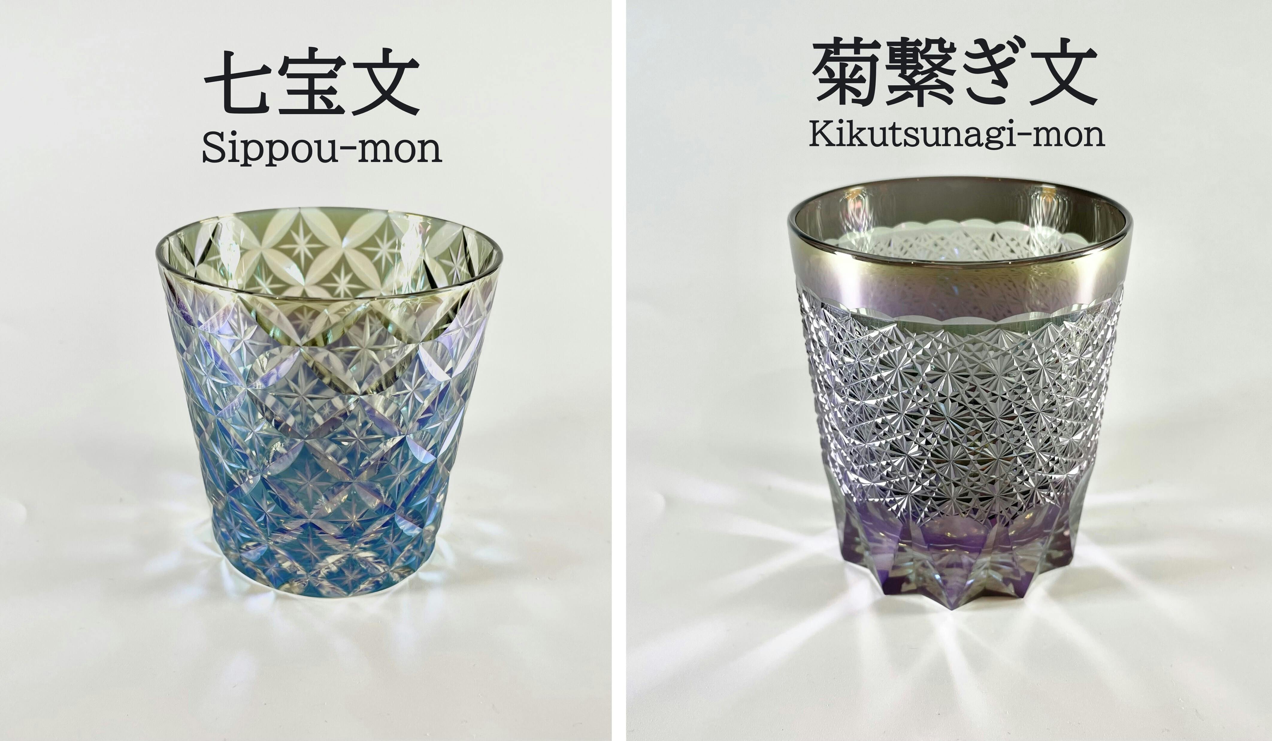 江戸時代から続く切子の技法を活かし、縁起の良い伝統文様を施しました。 それぞれのデザインには、幸運や長寿、調和の願いが込められています。